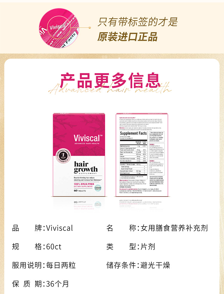 【跨境】Viviscal 女士膳食补充剂60/180粒/盒