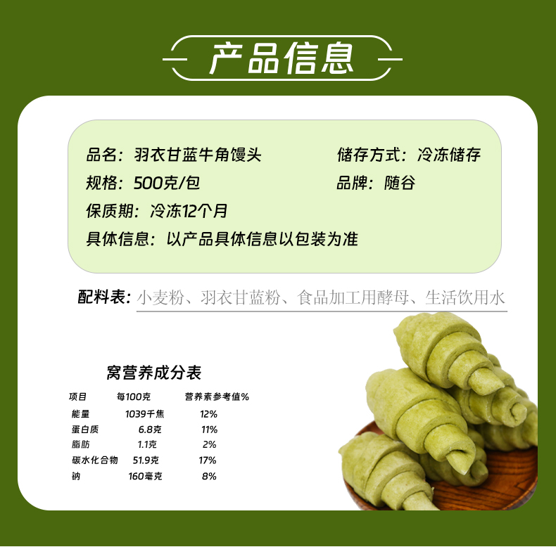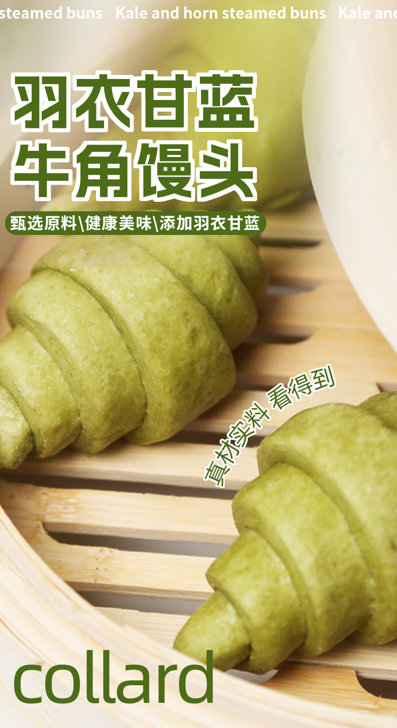【甄选】羽衣甘蓝牛角包馒头手工制作松软劲道配料干净480g*3袋