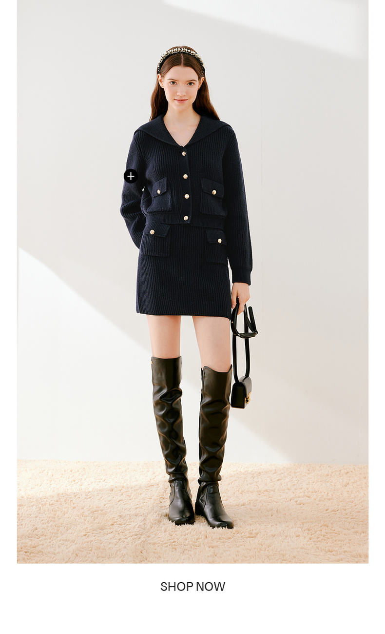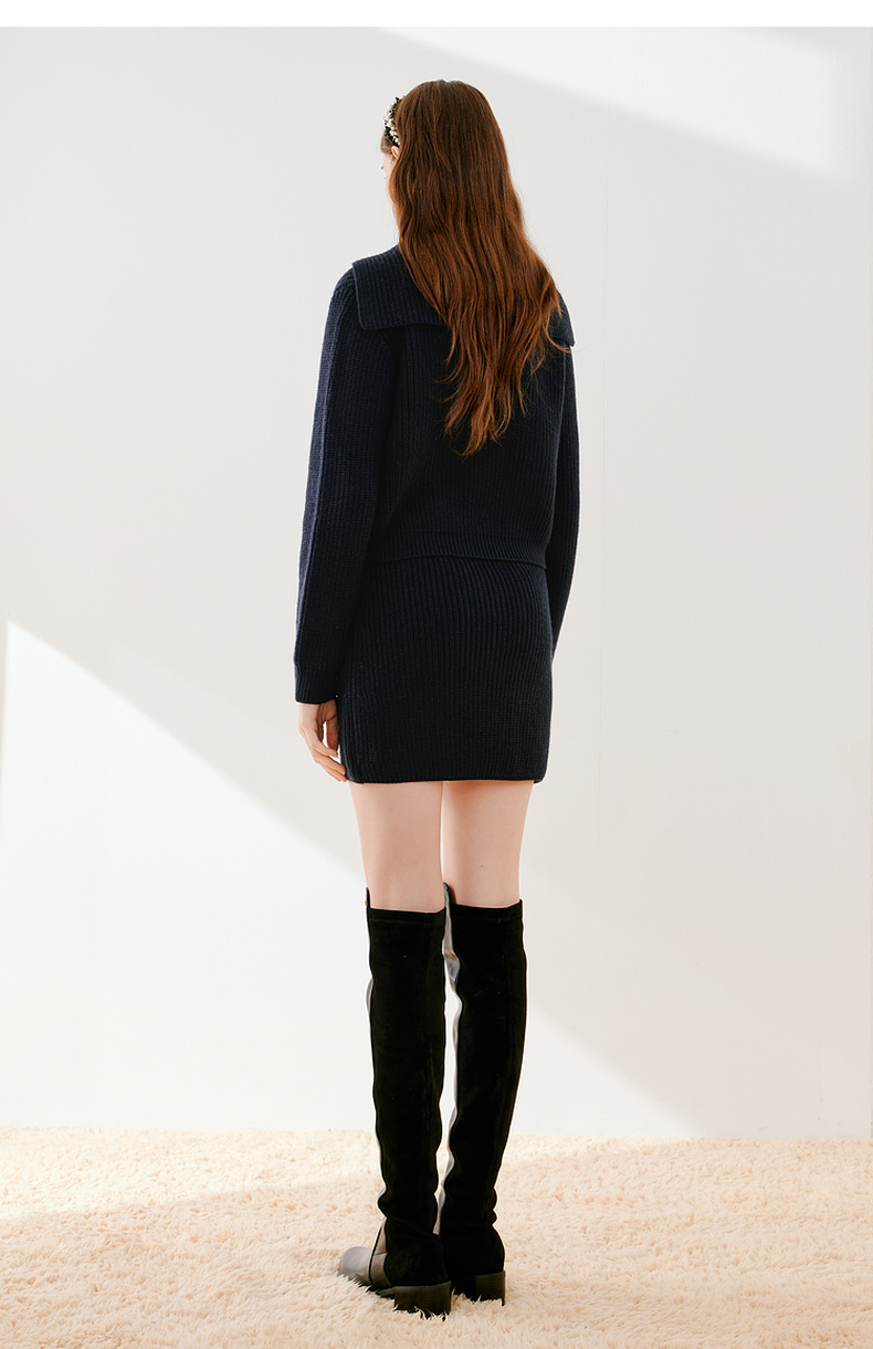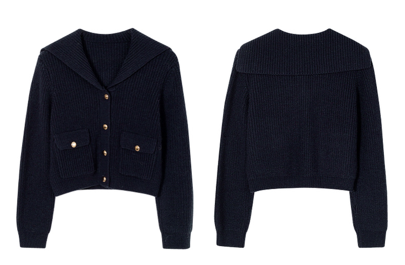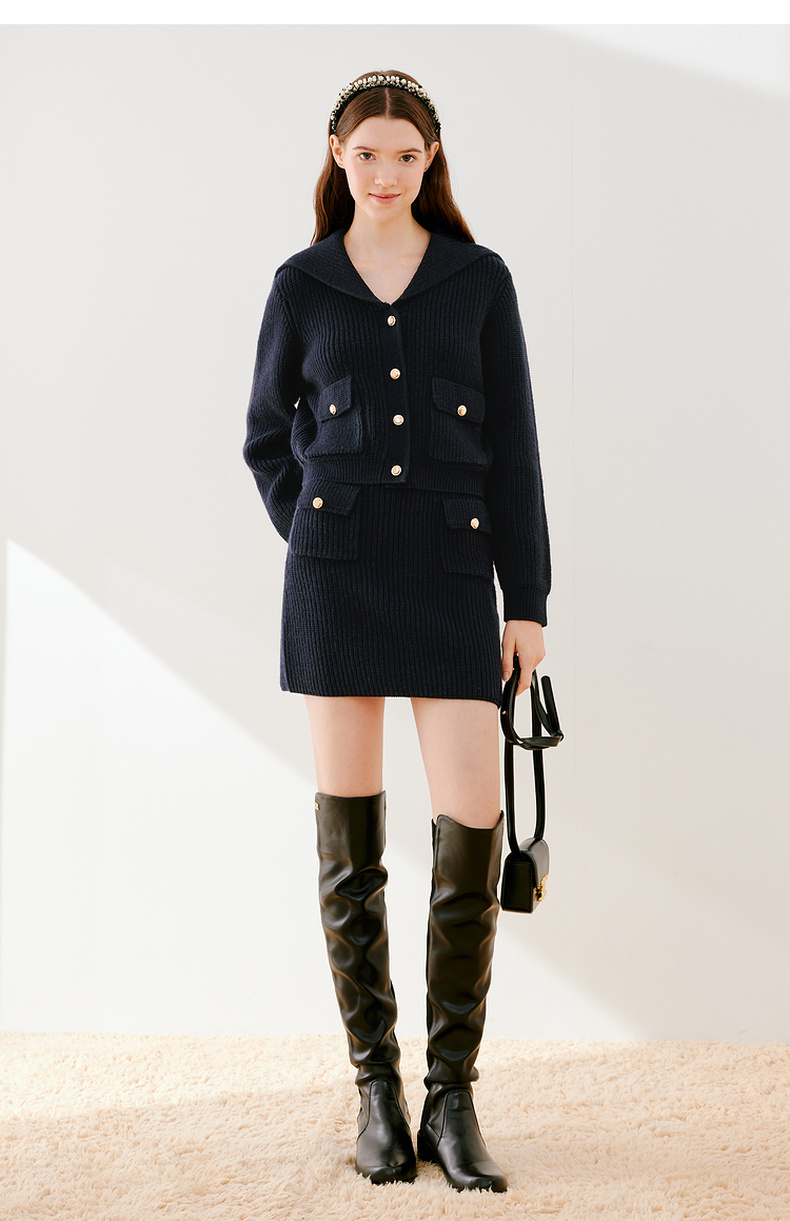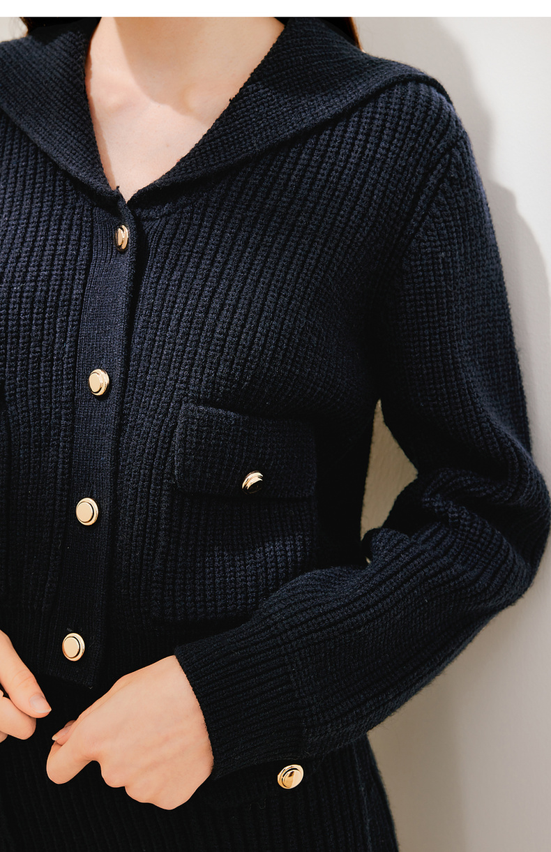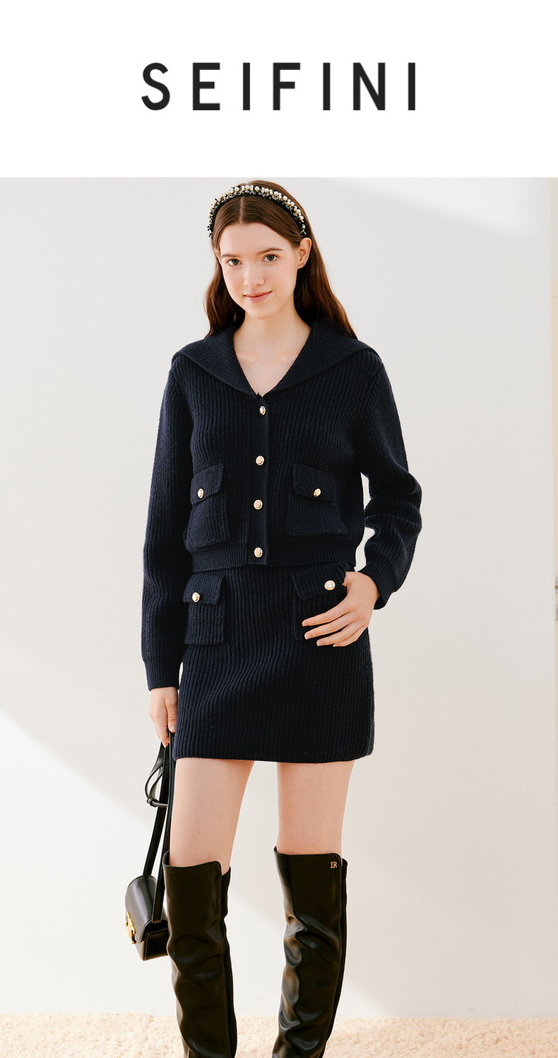 【严选】诗凡黎冬设计感海军翻领精致金属扣针织衫SEB231281