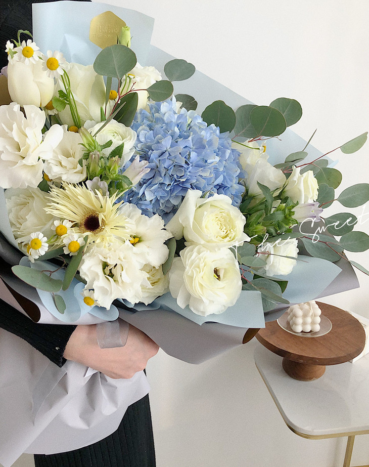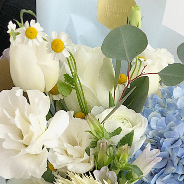 白玫瑰,绣球花,洋牡丹,进口扶郎,尤加利圆叶