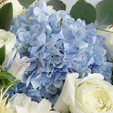 蓝色绣球与白色玫瑰搭配