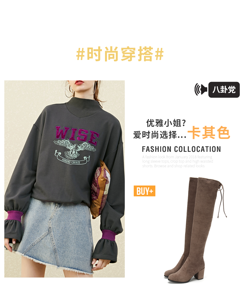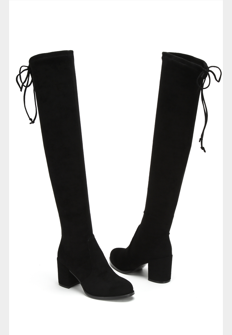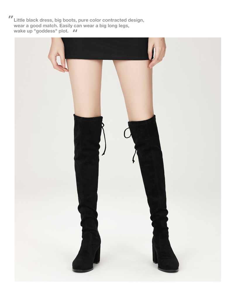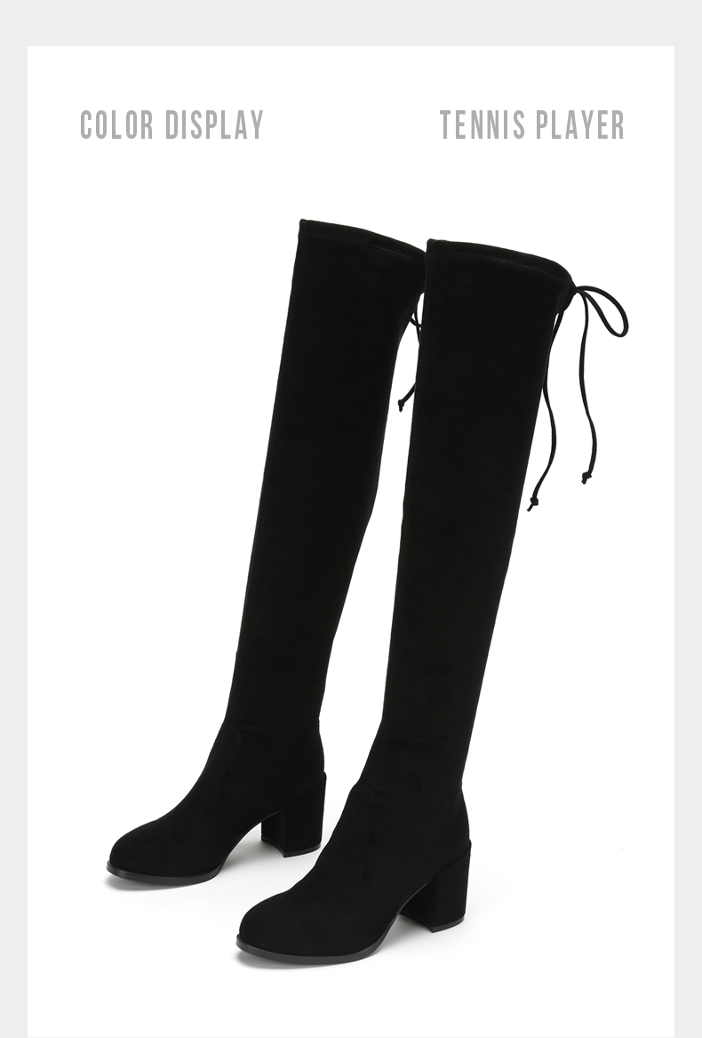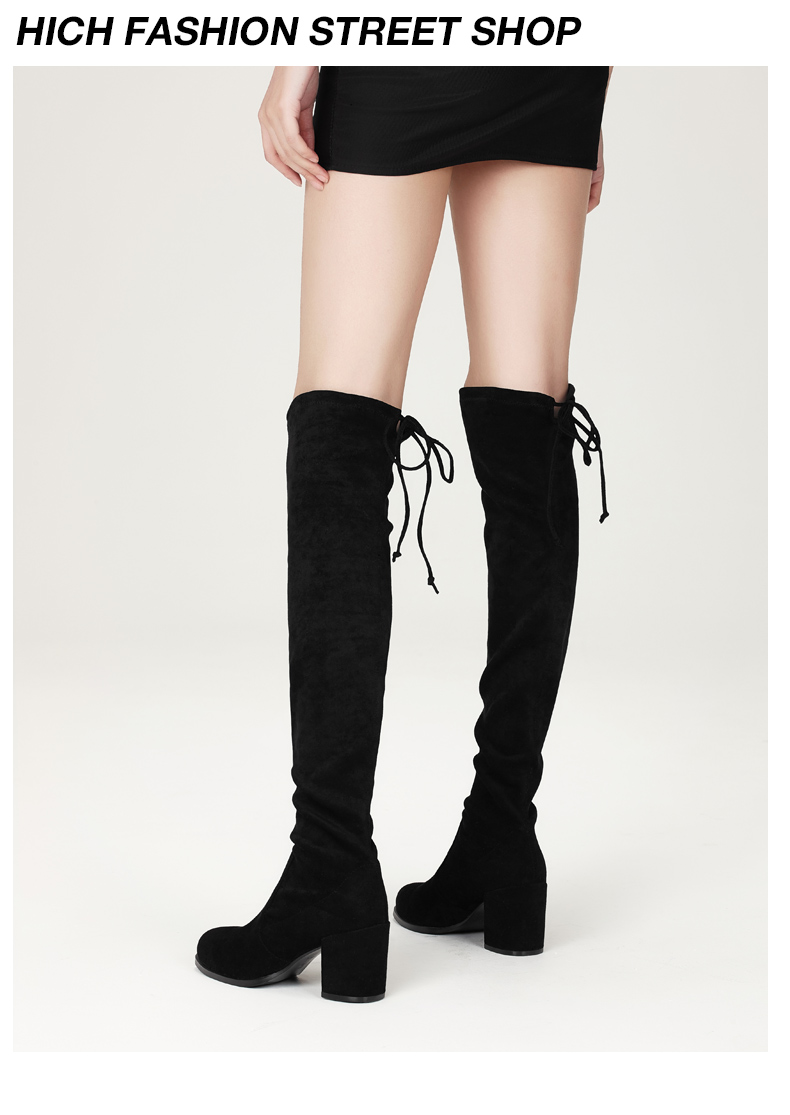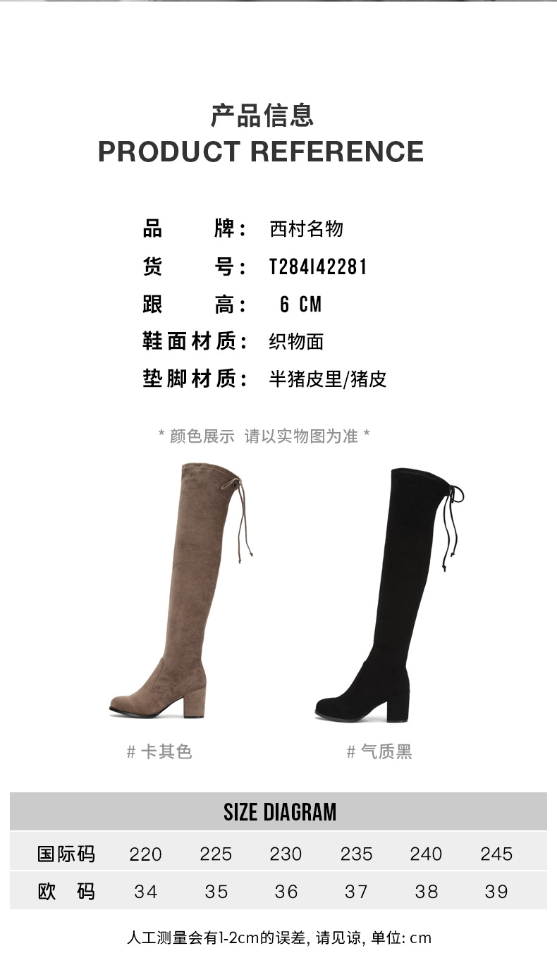 西村名物过膝靴女瘦腿长靴长筒靴粗高跟弹力高筒袜靴女T284I42281