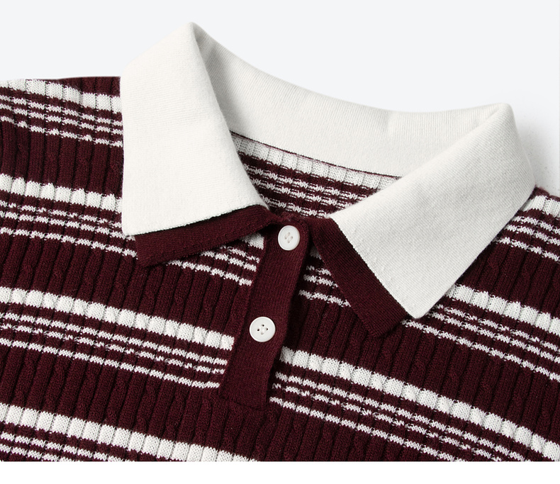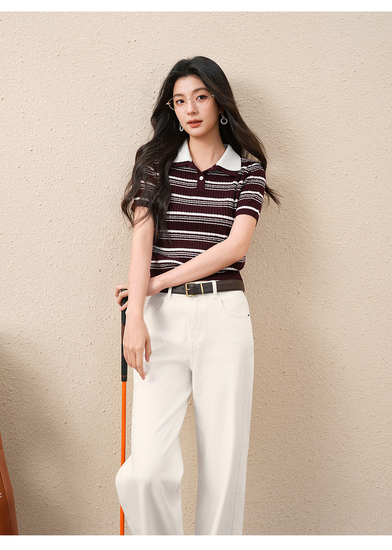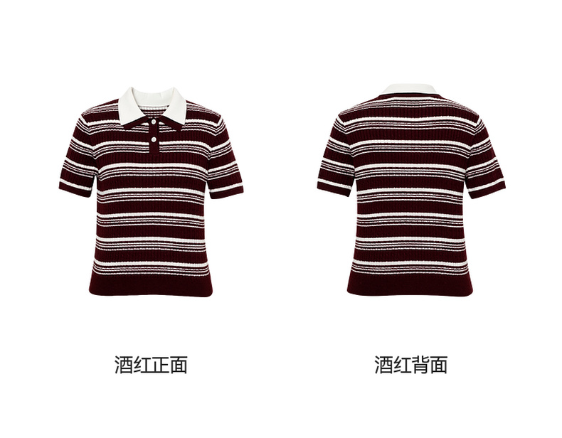 【严选】诗凡黎条纹撞色双层polo领针织衫2025秋新款时尚百搭修身短袖上衣7G7130981