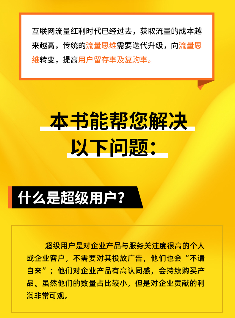 √*用户黄金法则:10%的头部用户可贡献普通用户5倍的价值。本书*如何留存优质用户、*存量用户、促使用户持续购买等问题提供了创新思路和实用方法。
