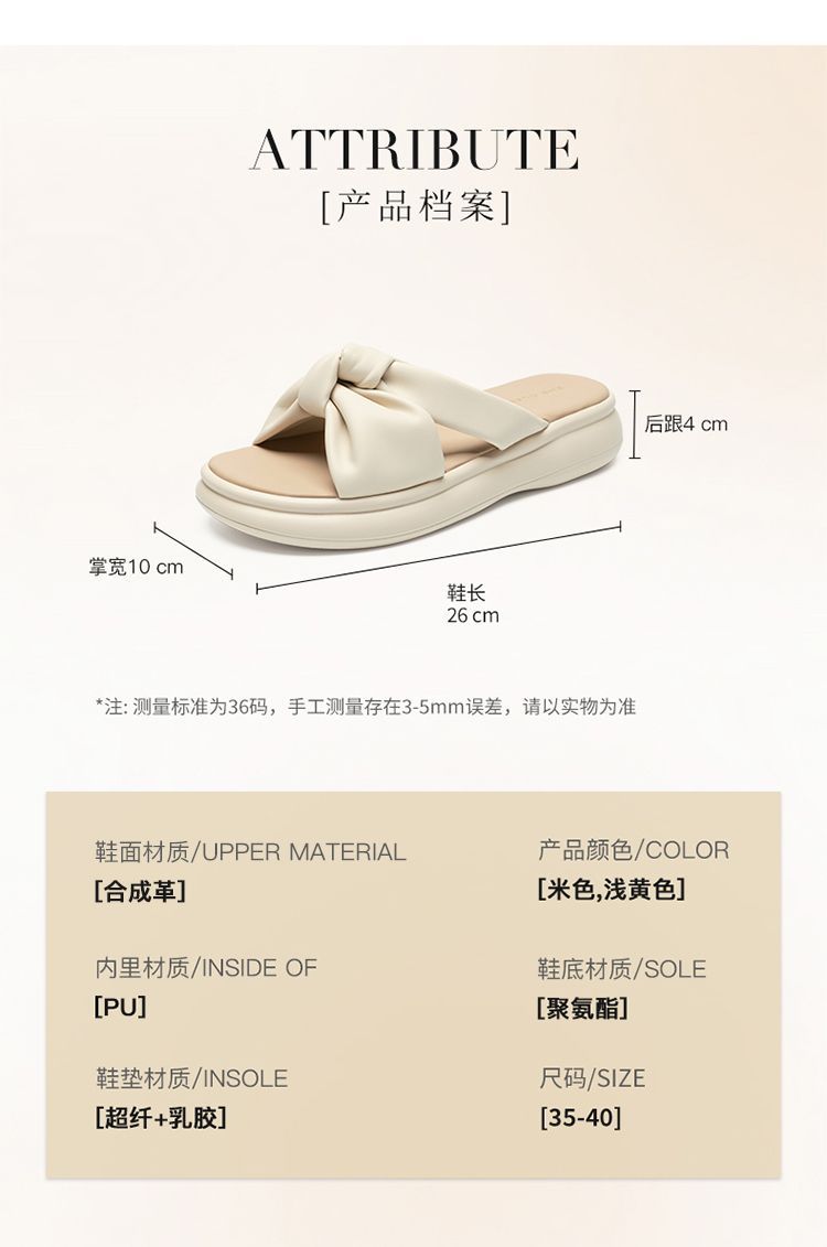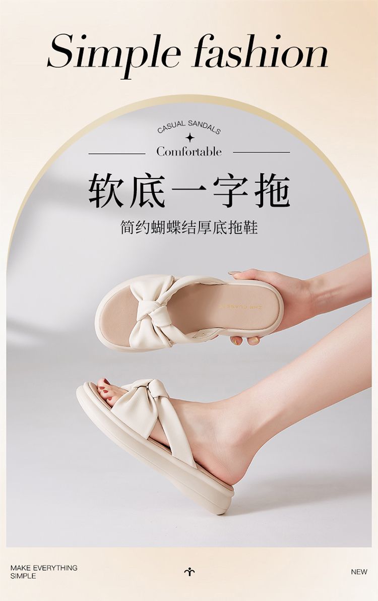 ZHR则则简约蝴蝶结厚底拖鞋女2025夏季新款时尚舒适透气防滑鞋子