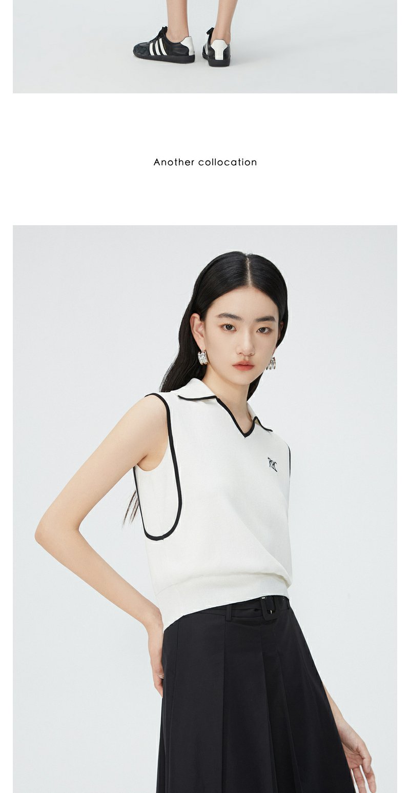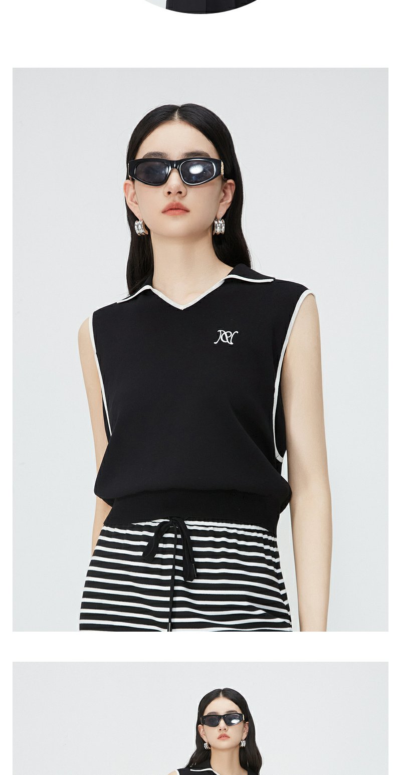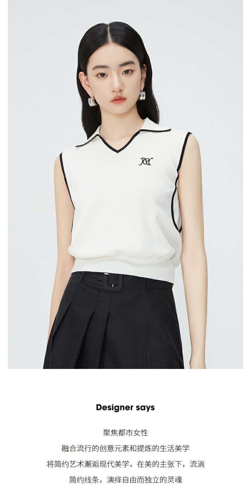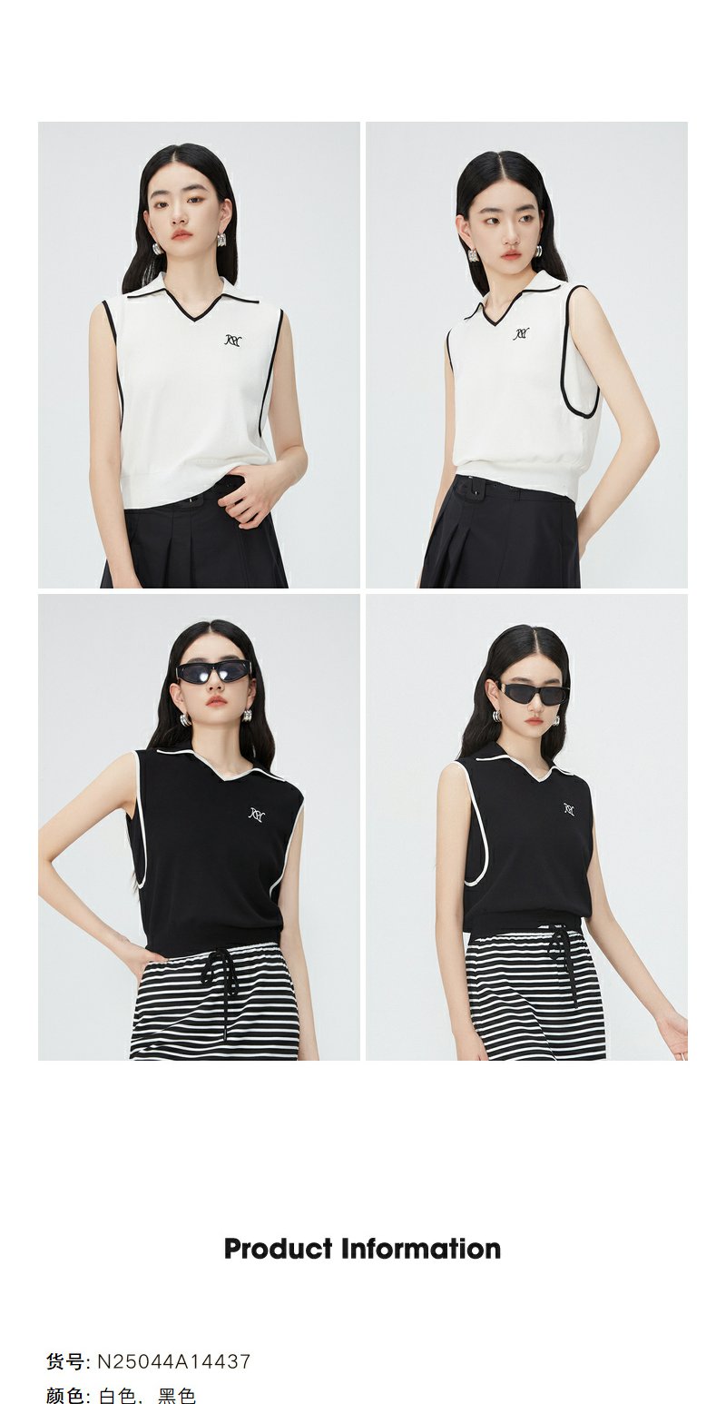 NEELLY纳俪商场同款夏新款翻领无袖背心T恤女小众撞色设计感上衣N25044A14437