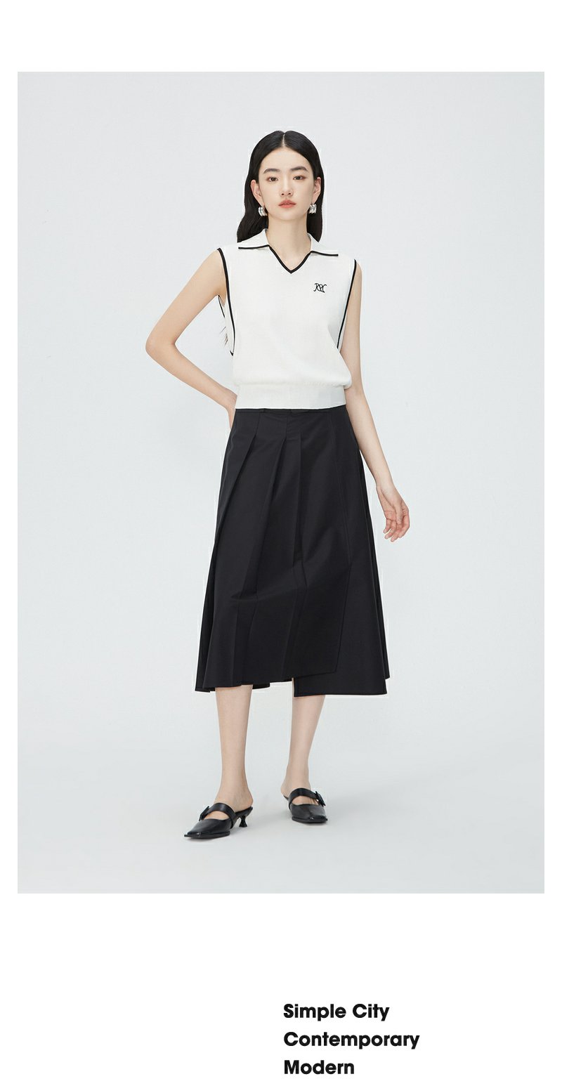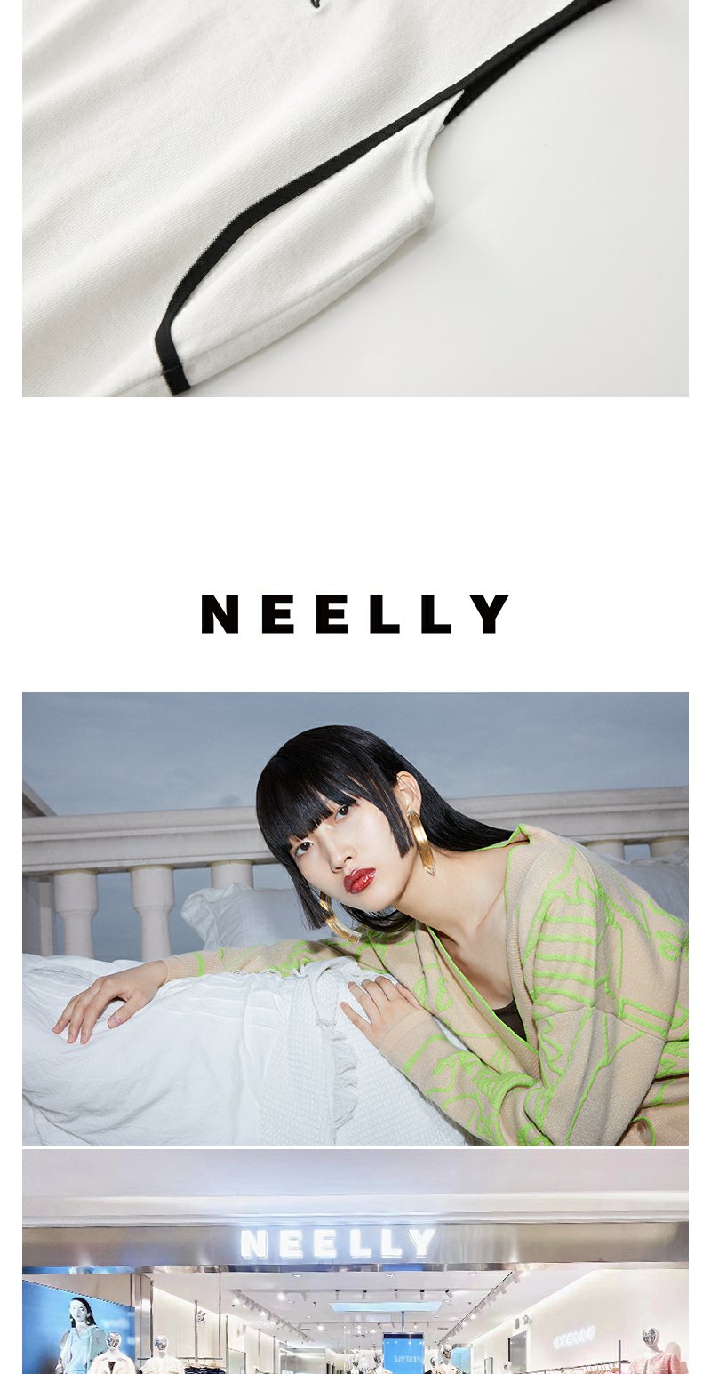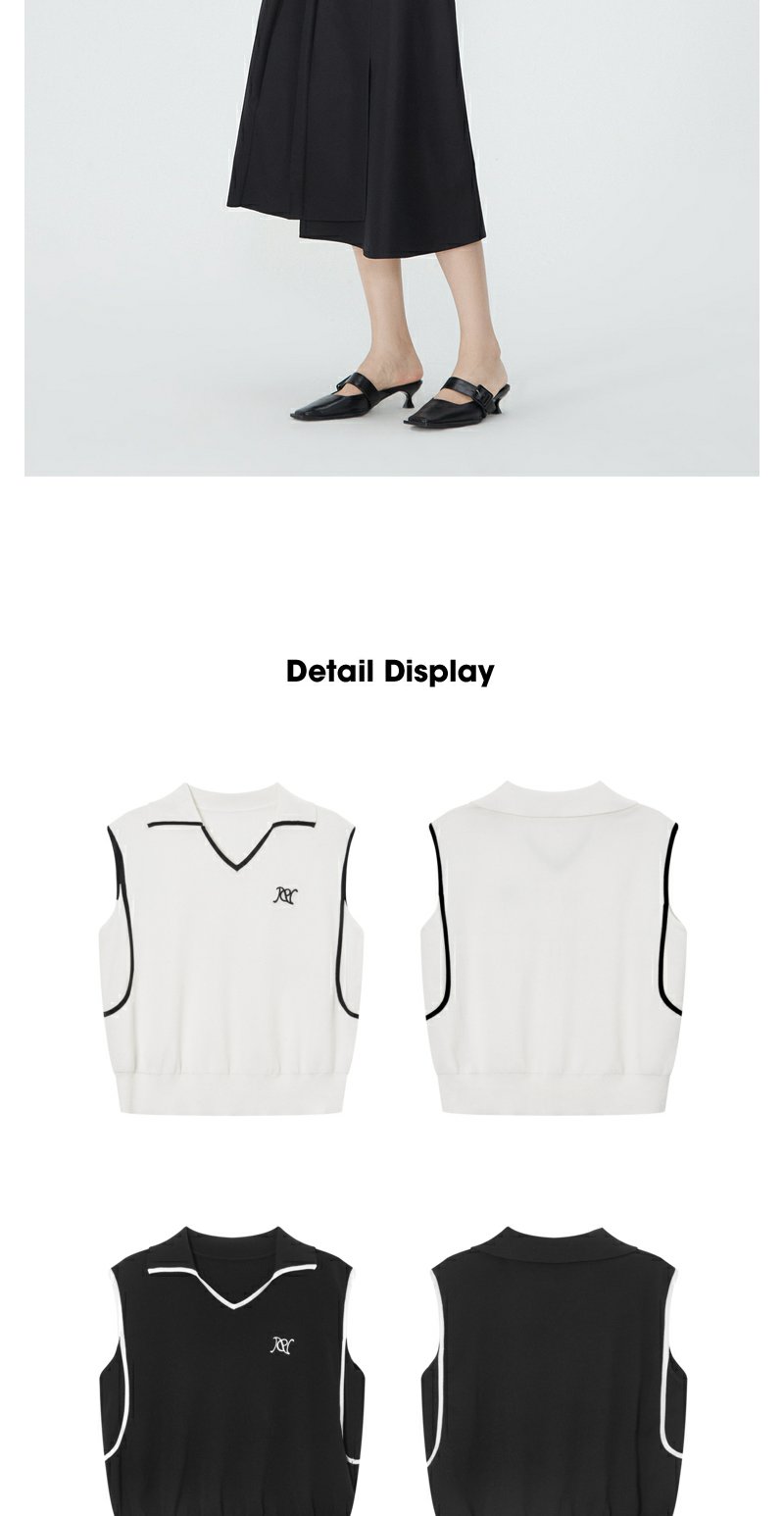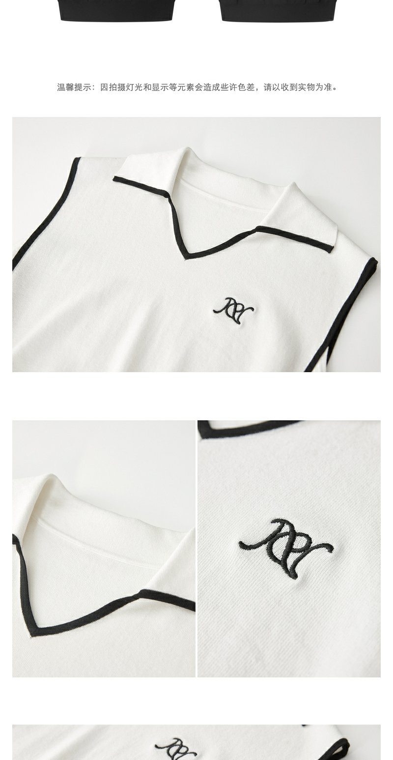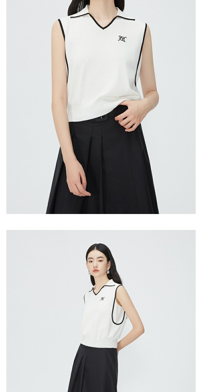 NEELLY纳俪商场同款夏新款翻领无袖背心T恤女小众撞色设计感上衣N25044A14437