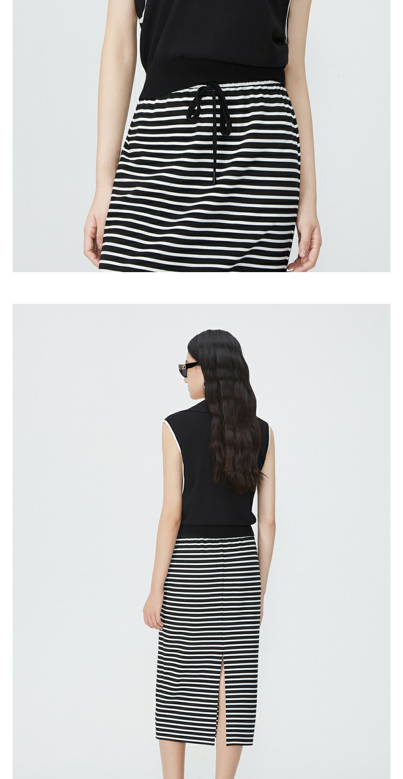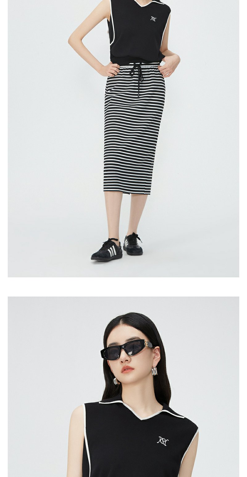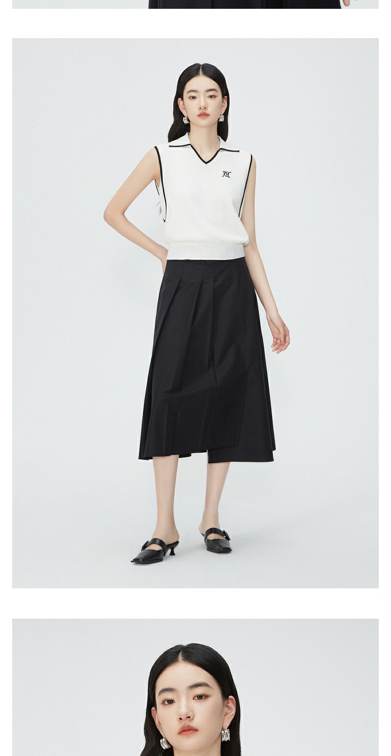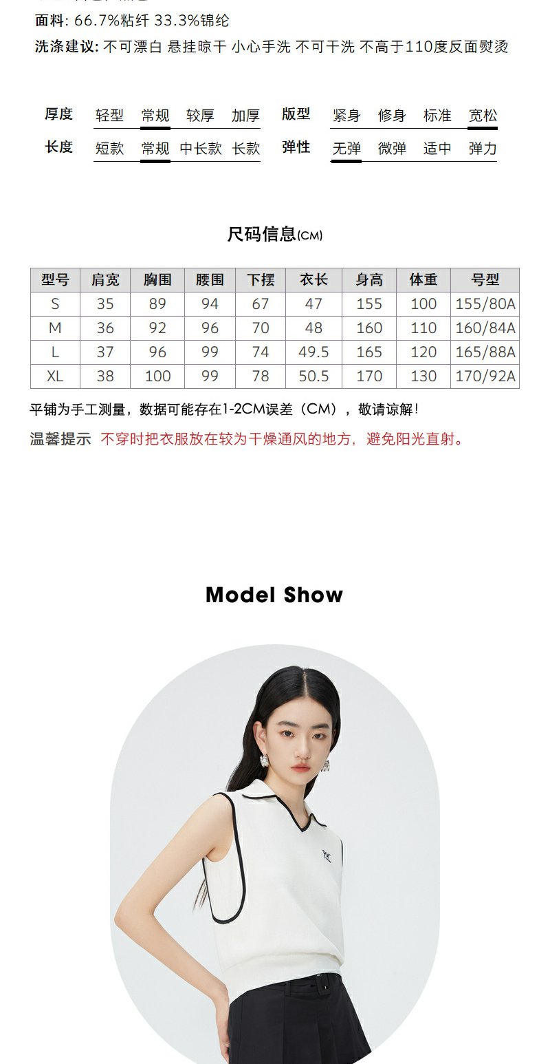 NEELLY纳俪商场同款夏新款翻领无袖背心T恤女小众撞色设计感上衣N25044A14437