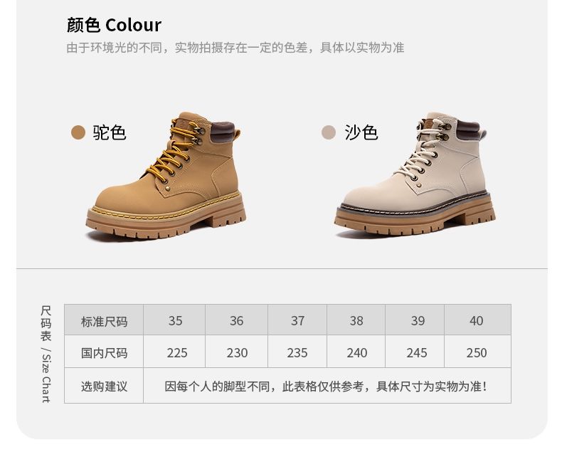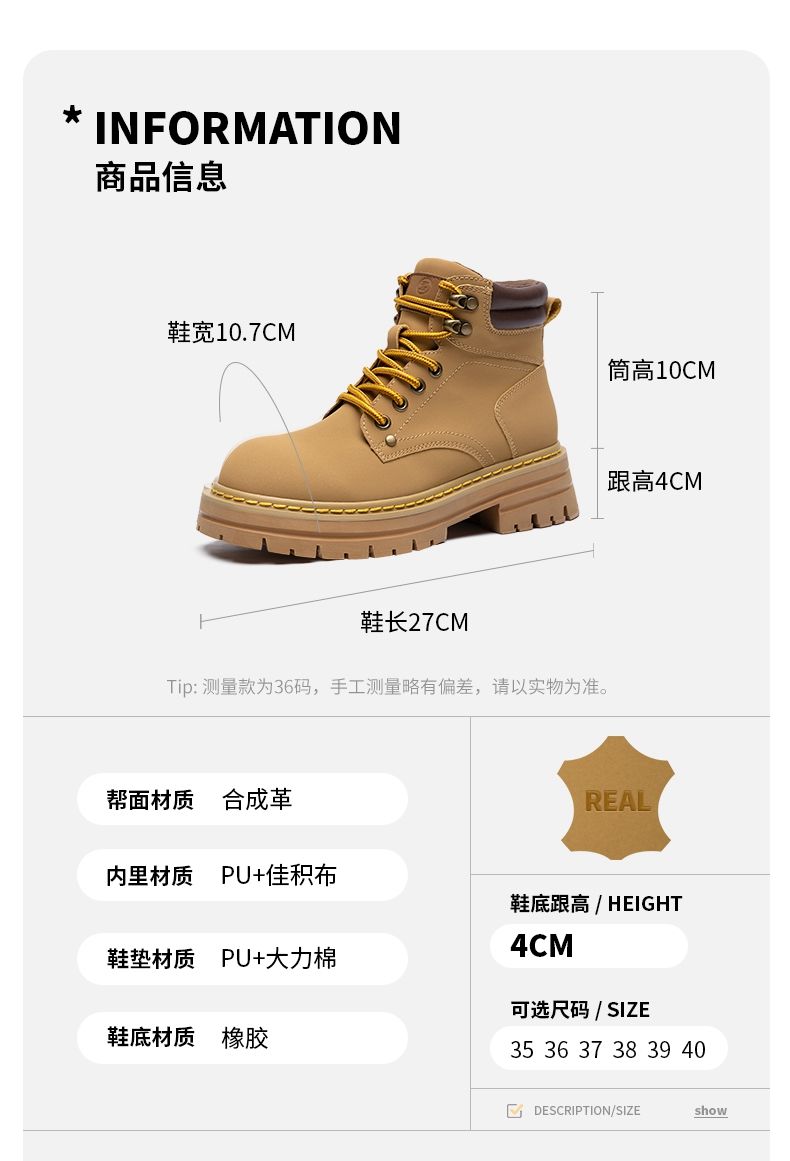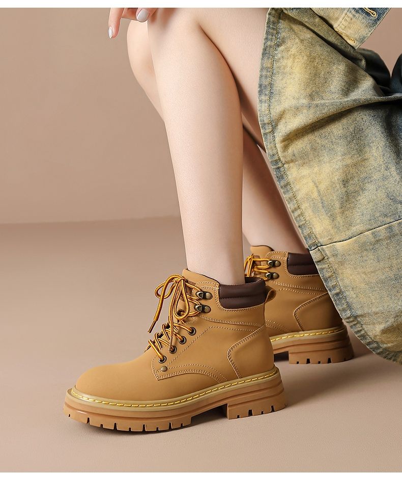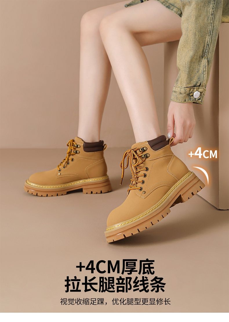 ZHR则则厚底防滑马丁靴防水女靴大黄靴2024秋季新款ins百搭工装靴