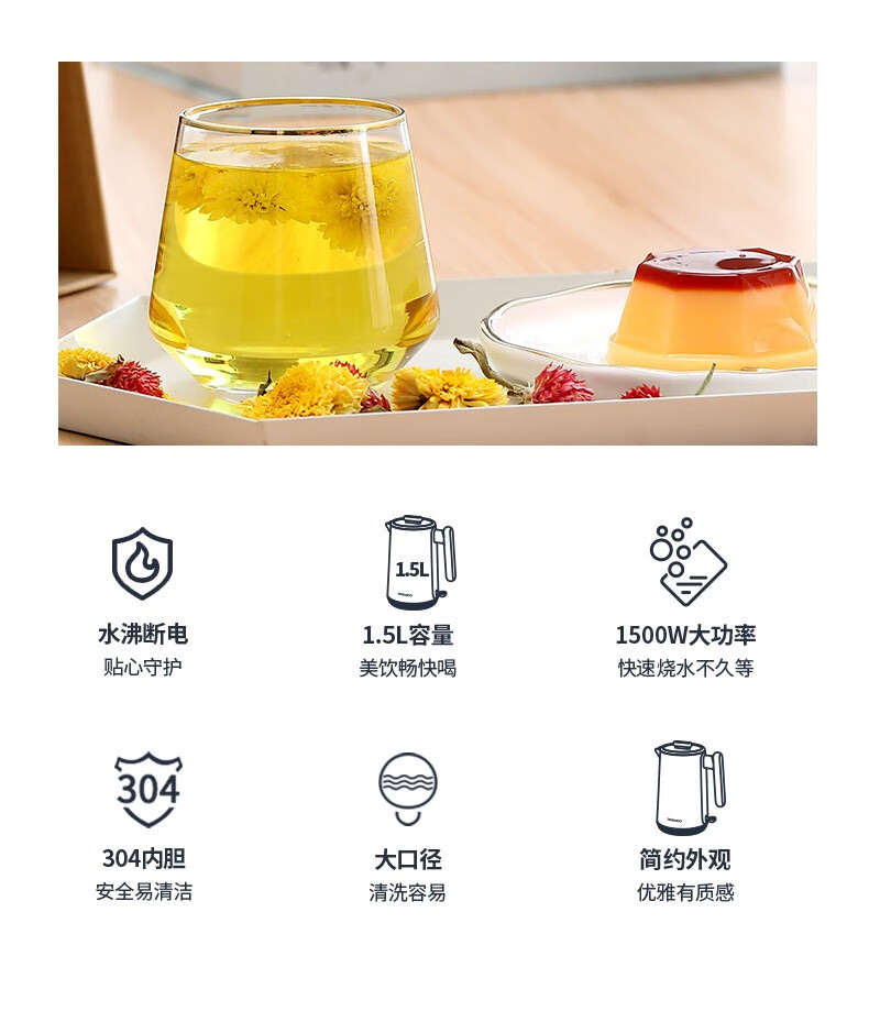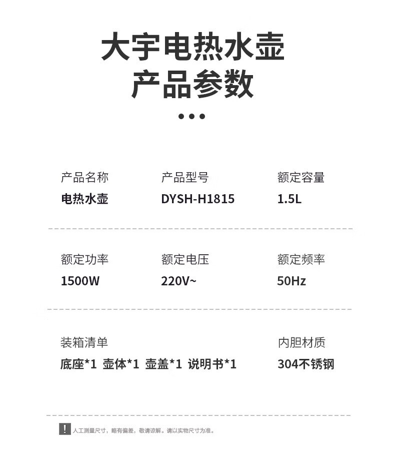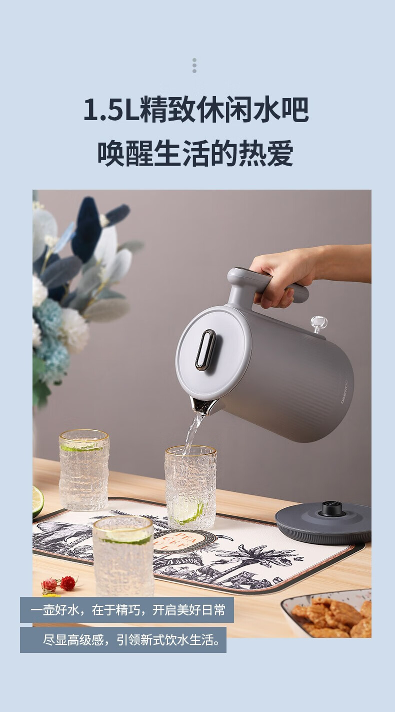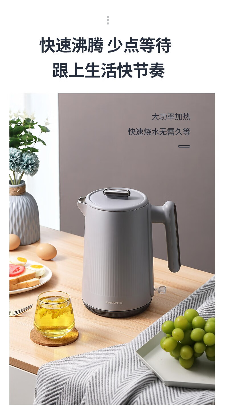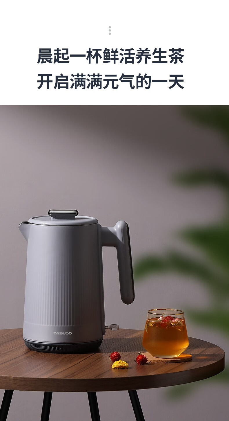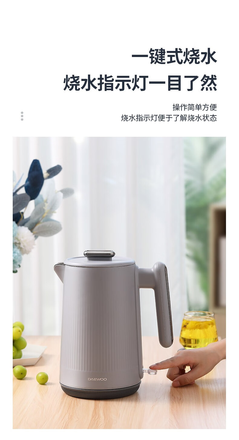 大宇(DAEWOO)电热水壶1.5L大容量家用双层防烫烧水壶DYSH-H1815