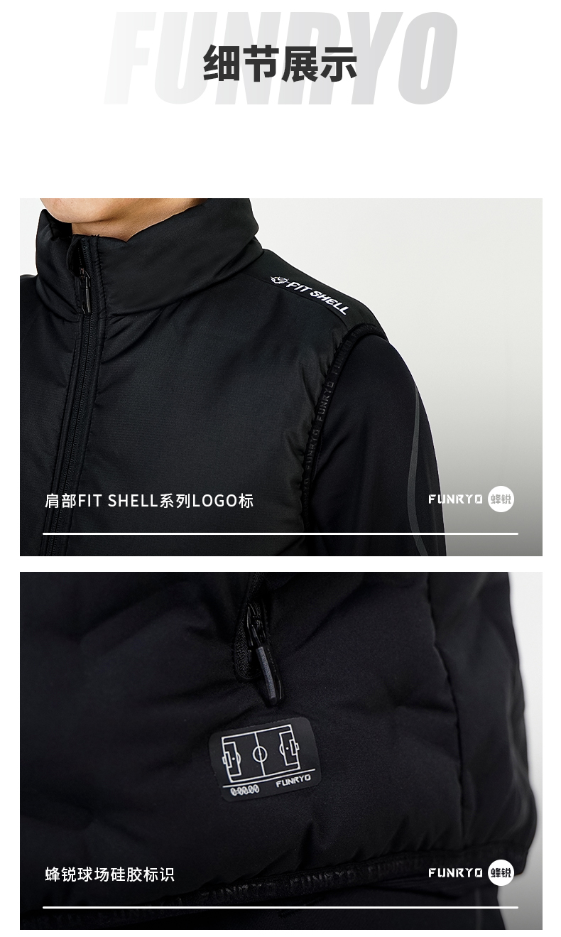 蜂锐FUNRY秋冬防寒羽绒棉马甲足球运动保暖背心训练外套男