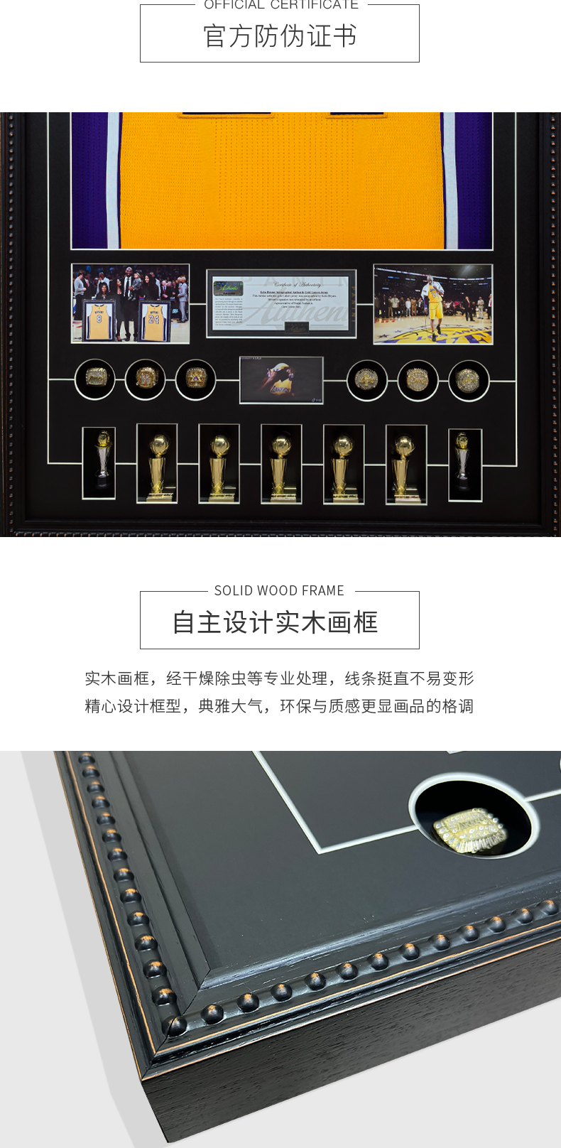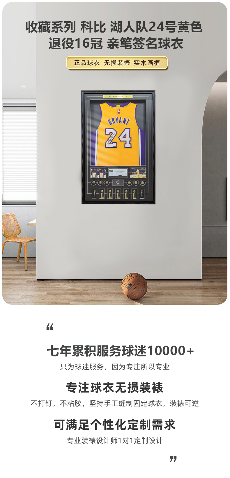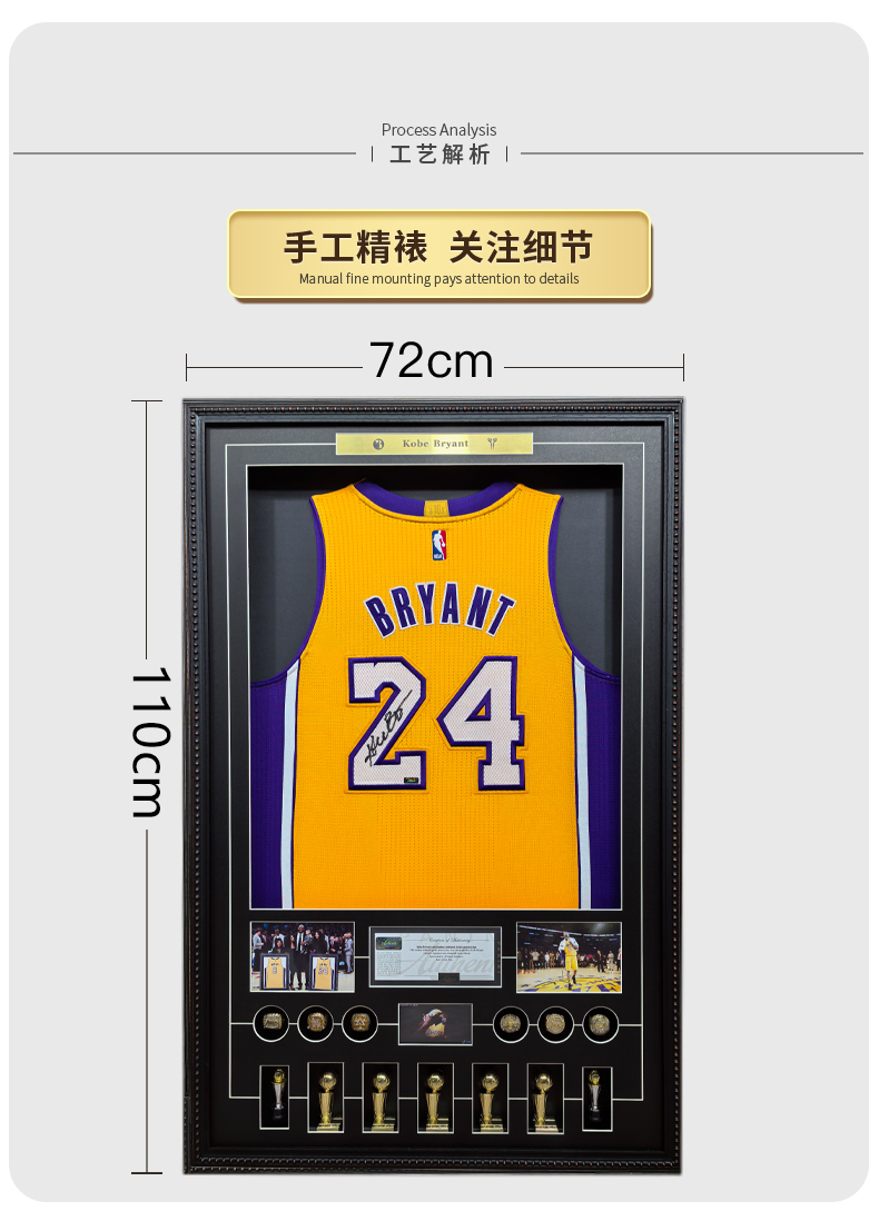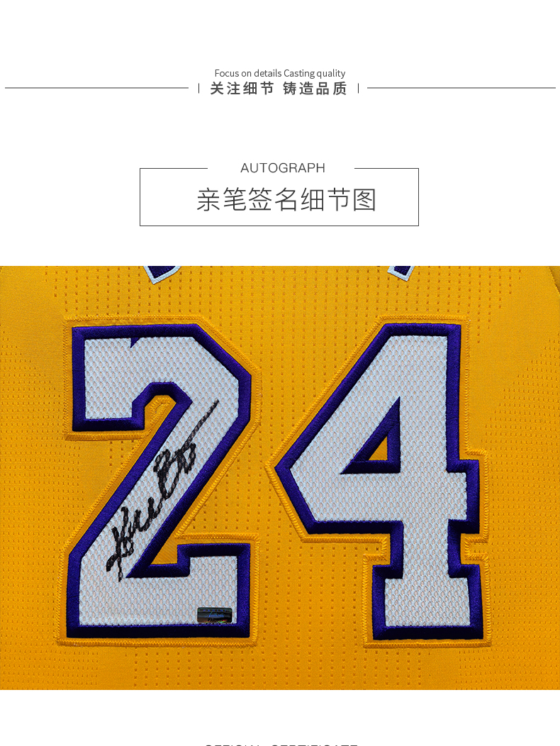 收藏系列 科比 湖人队24号黄色 退役16冠 亲笔签名球衣