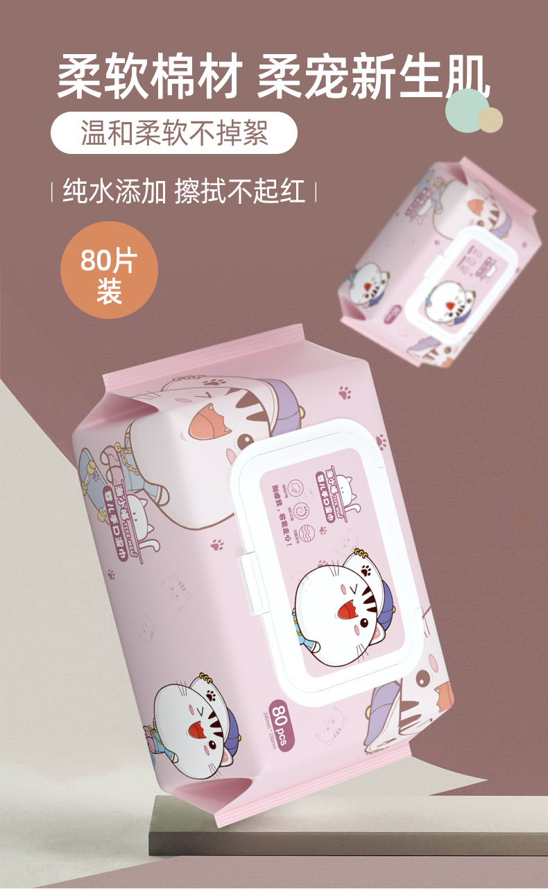 潮小喵婴儿手口湿巾80片A-1013婴幼儿手口湿巾80抽大包装手口屁专用抽取式