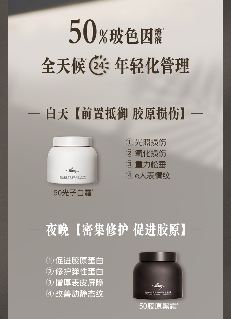 【混知推荐】【50%玻色因溶液抗皱组合】diary言之有物玻色因面霜50g+胶原精华30ml+玻色因维C面霜50g+玻色因维C精华30ml+维k眼霜15g+维k小果咖啡眼油9ml