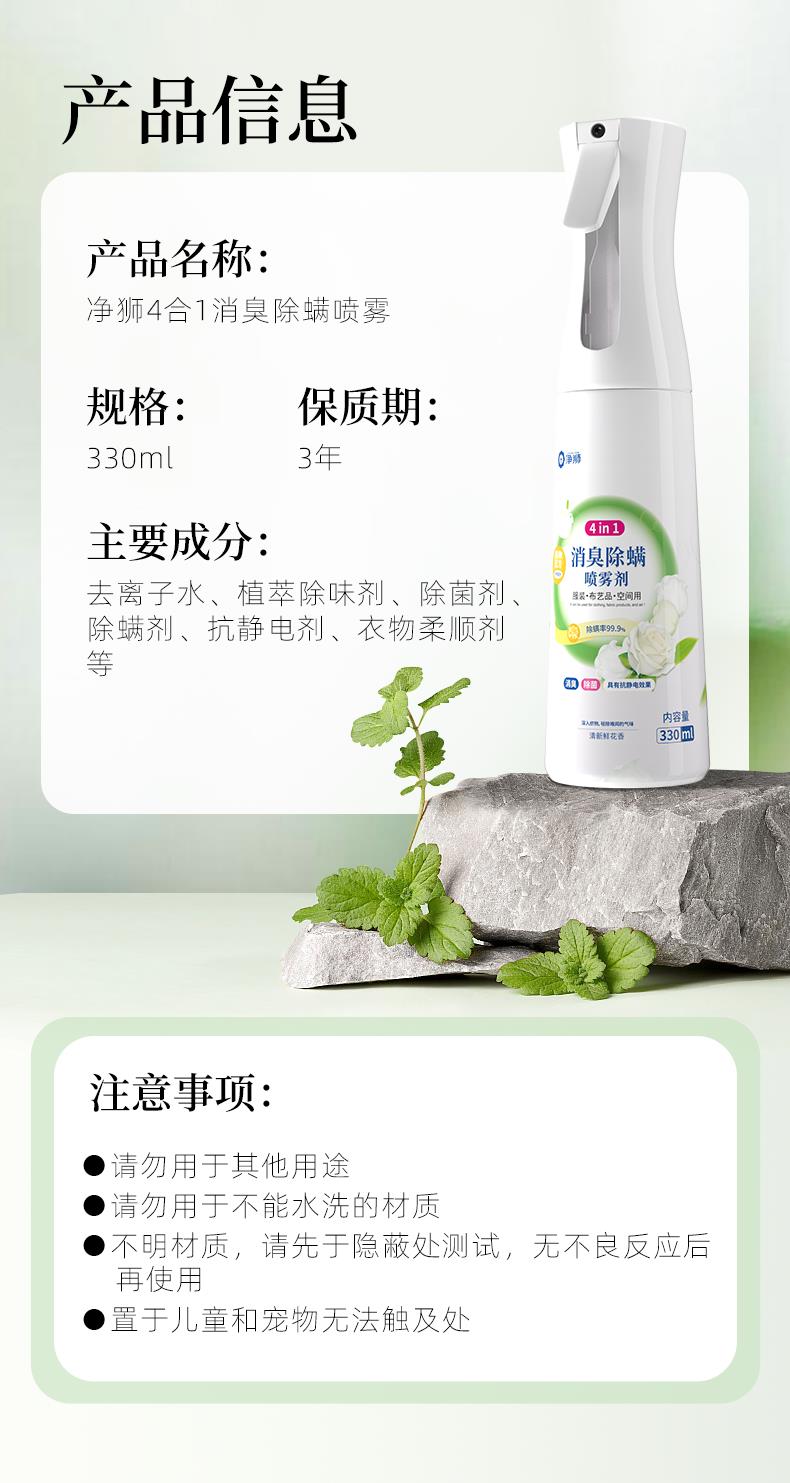 净狮丨衣物除螨除味抗静电三合一喷雾-1瓶2瓶