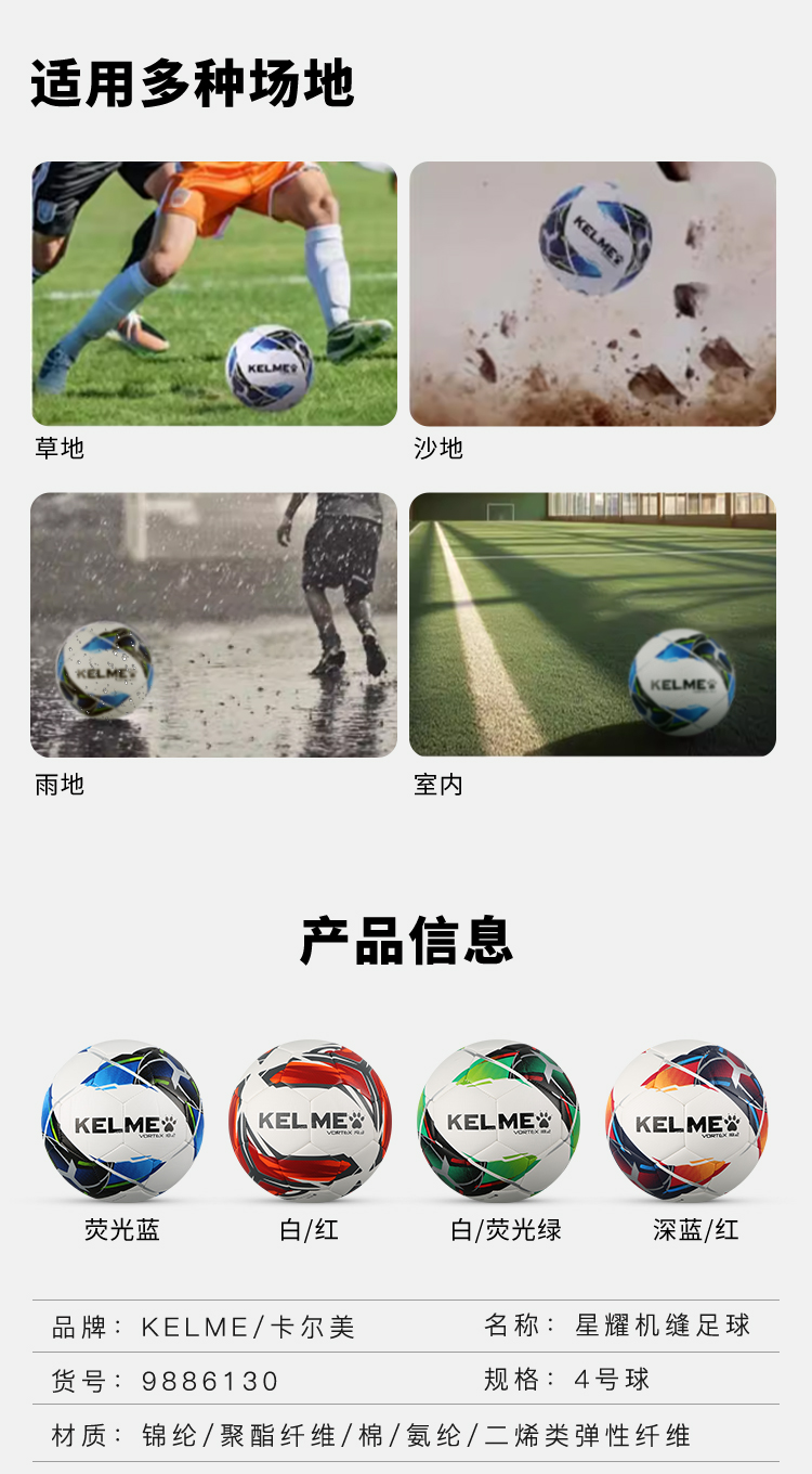 小李子正品KELME卡尔美足球训练星耀4号5号机缝足球9886130107