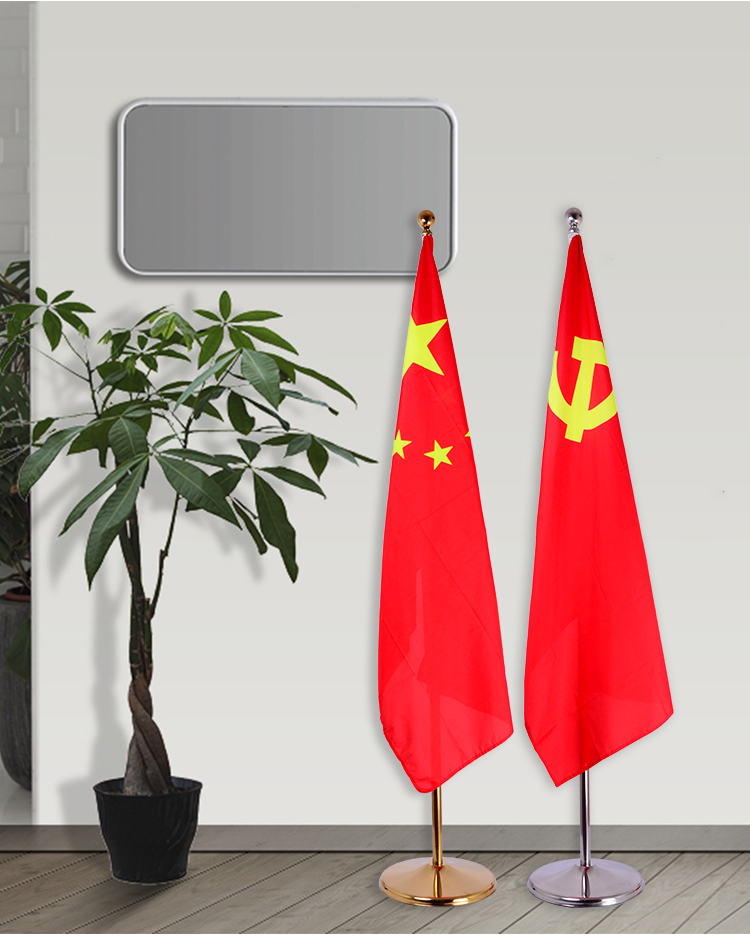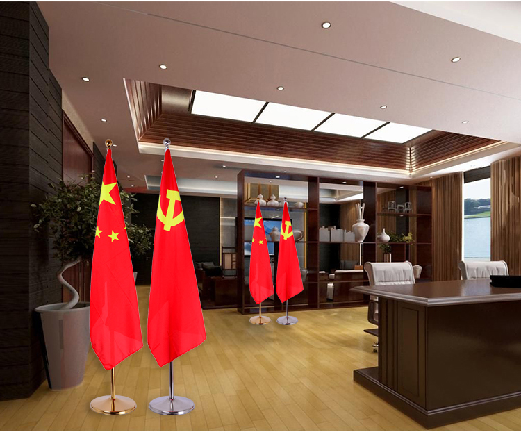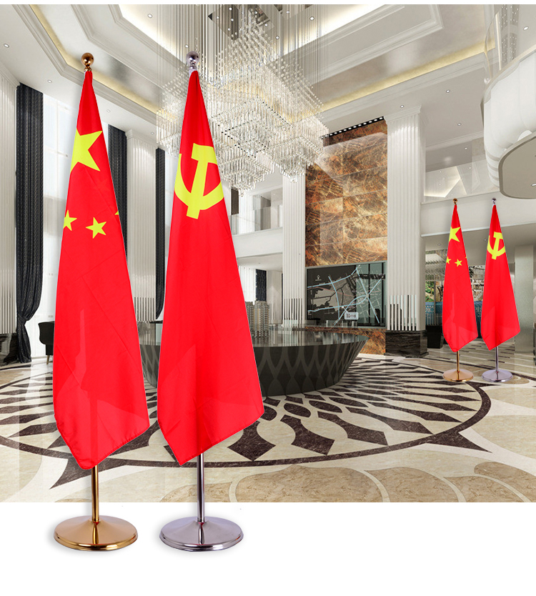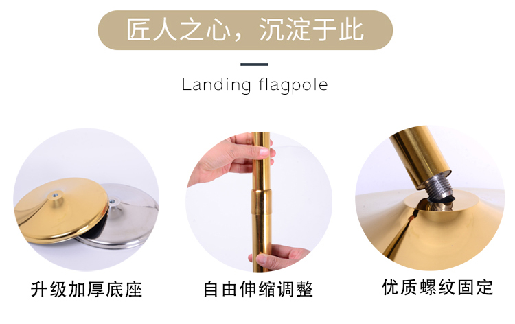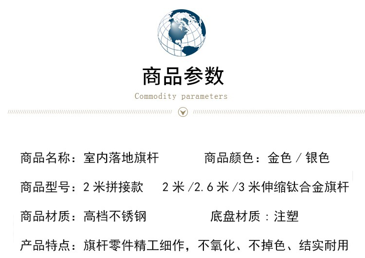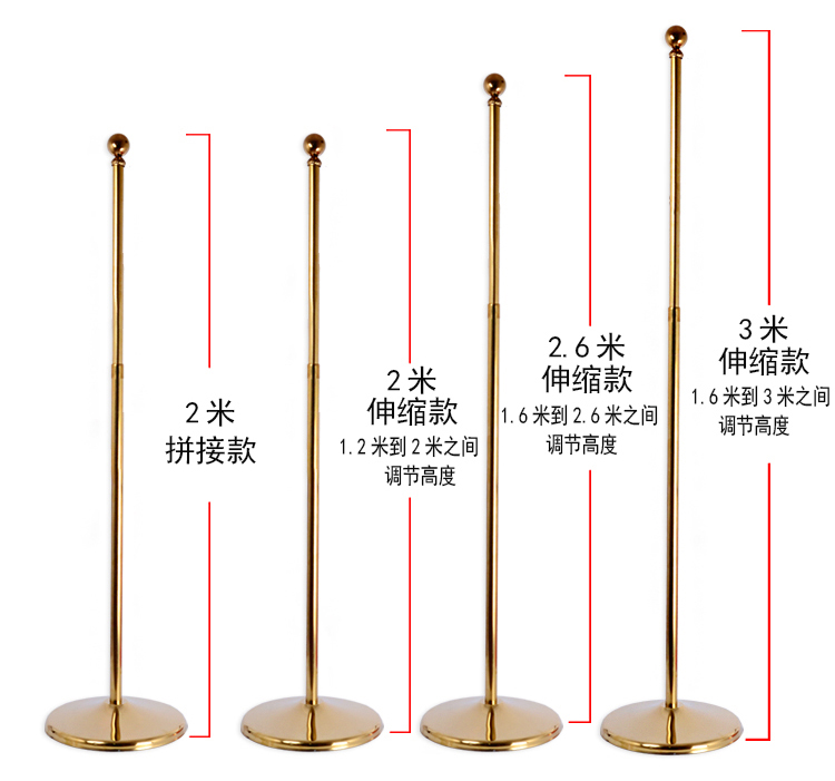 旗杆2M银色伸缩款高端不锈钢室内落地旗杆办公室会议室国旗党旗摆件摆架