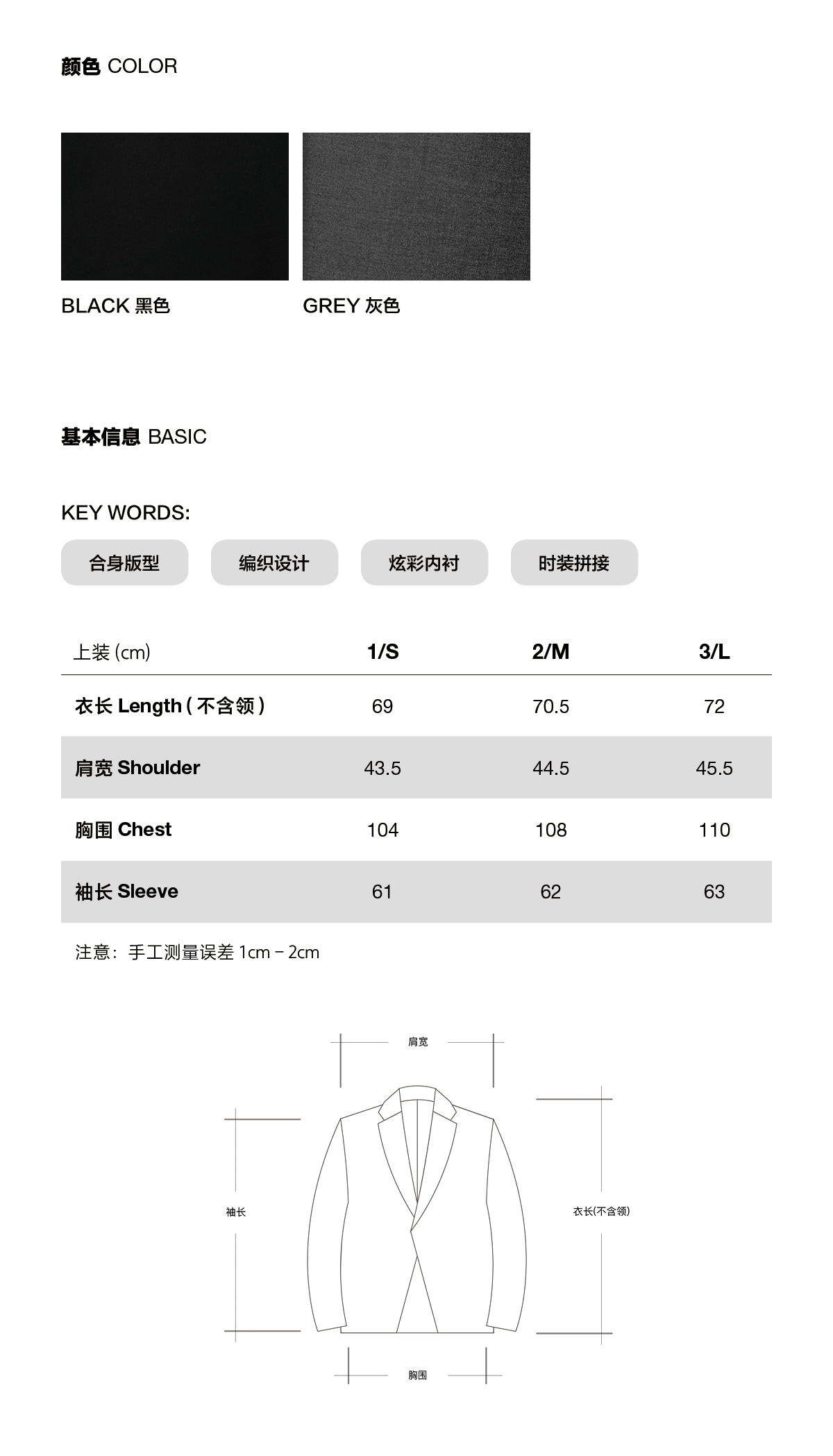 | 后开衩方式: 后中开衩 |