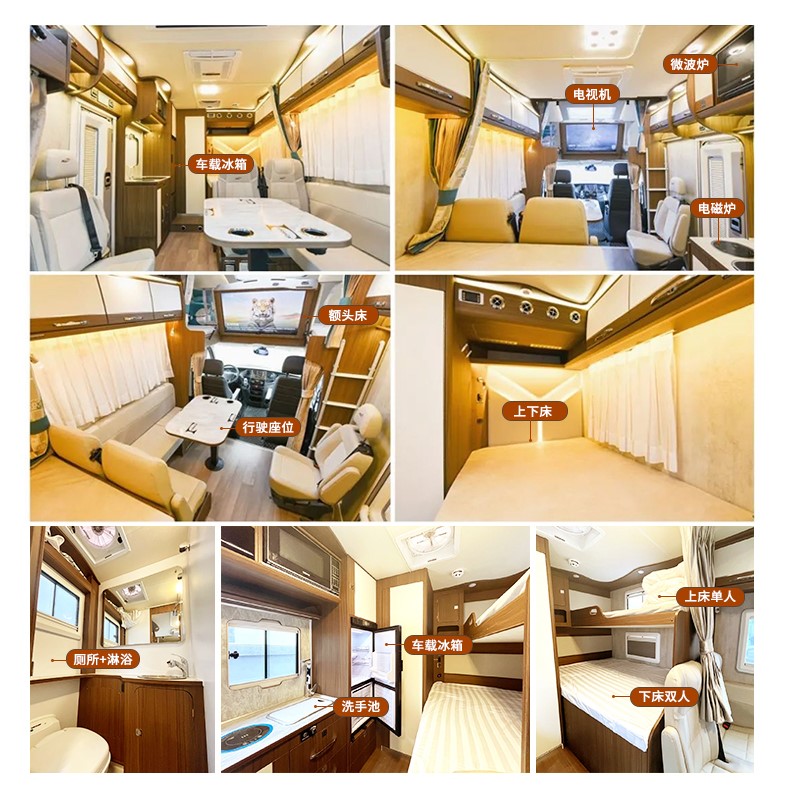 2.房车至多乘坐5人,第3人起须增加布草费50元/人/套;