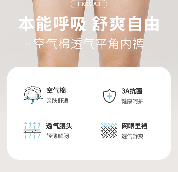 都市丽人简约基础空气棉平角裤男士内裤FK3CA3
