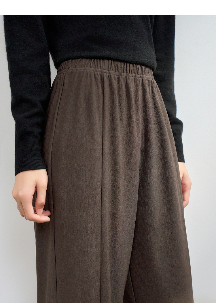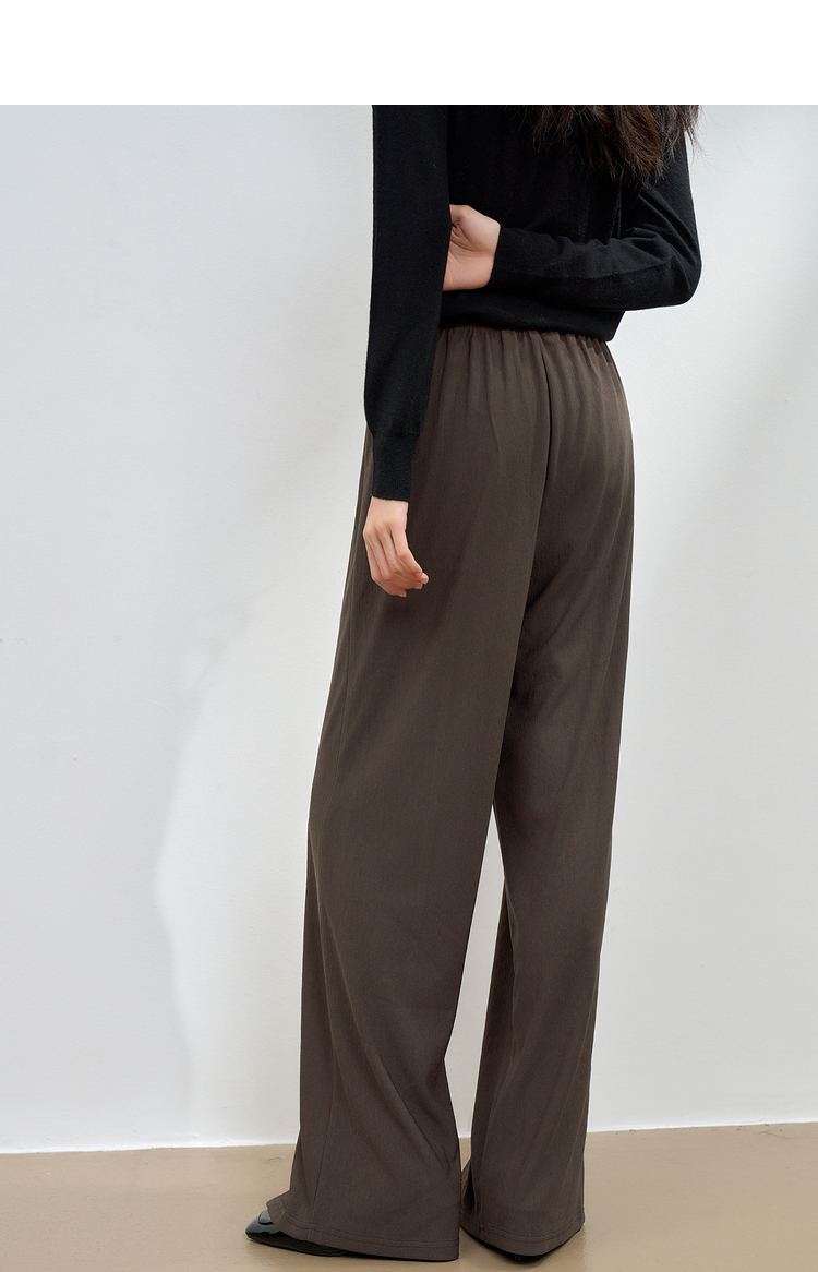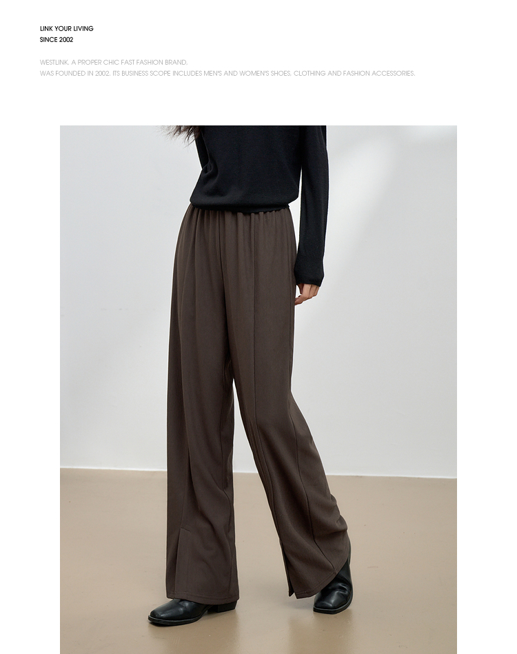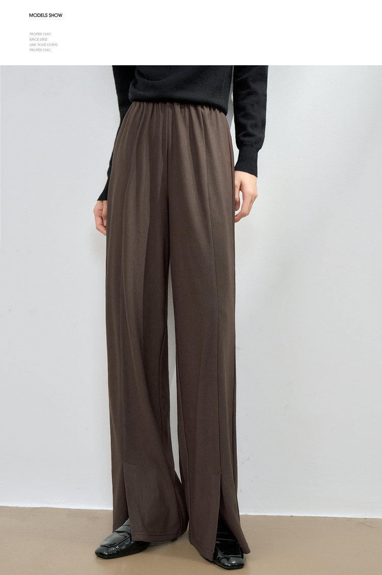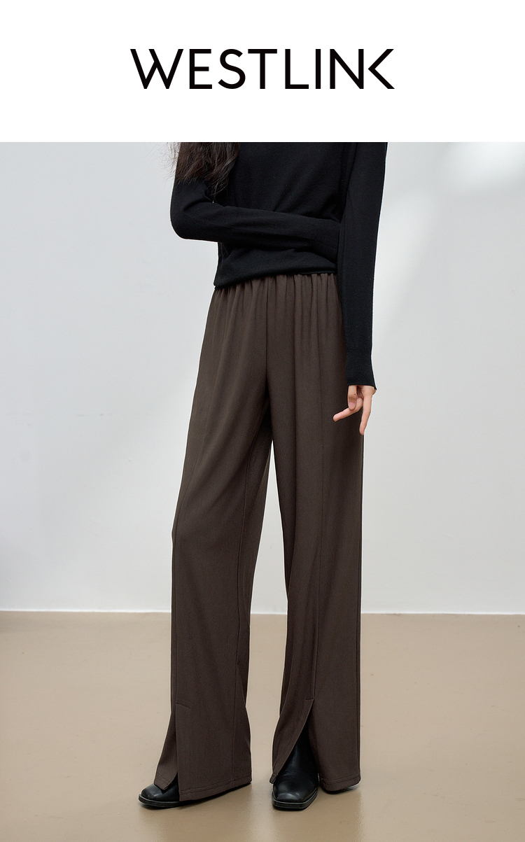 西遇咖色阔腿裤女新款宽松针织休闲裤松弛感长裤遛弯裤13542552