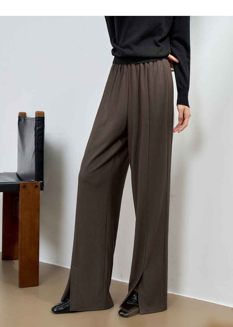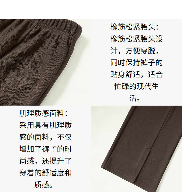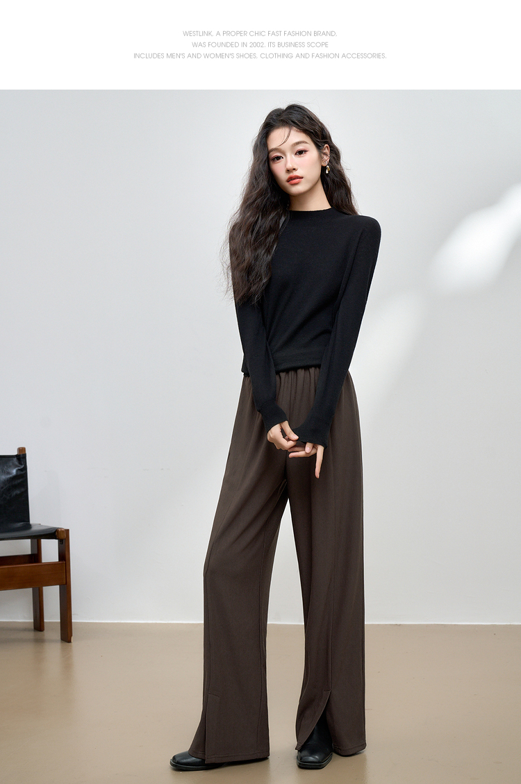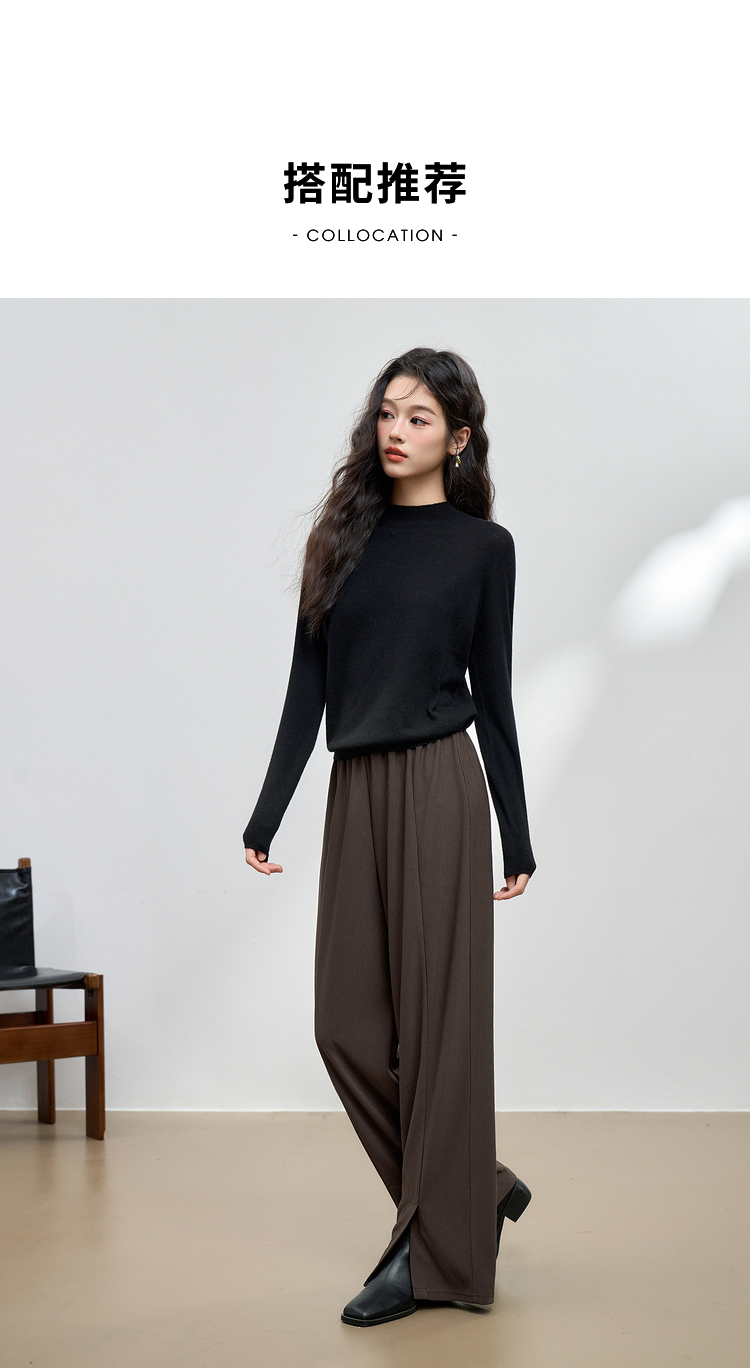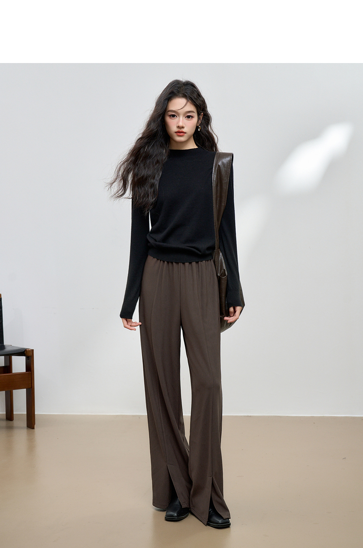 西遇咖色阔腿裤女新款宽松针织休闲裤松弛感长裤遛弯裤13542552