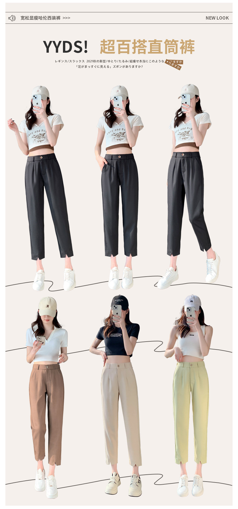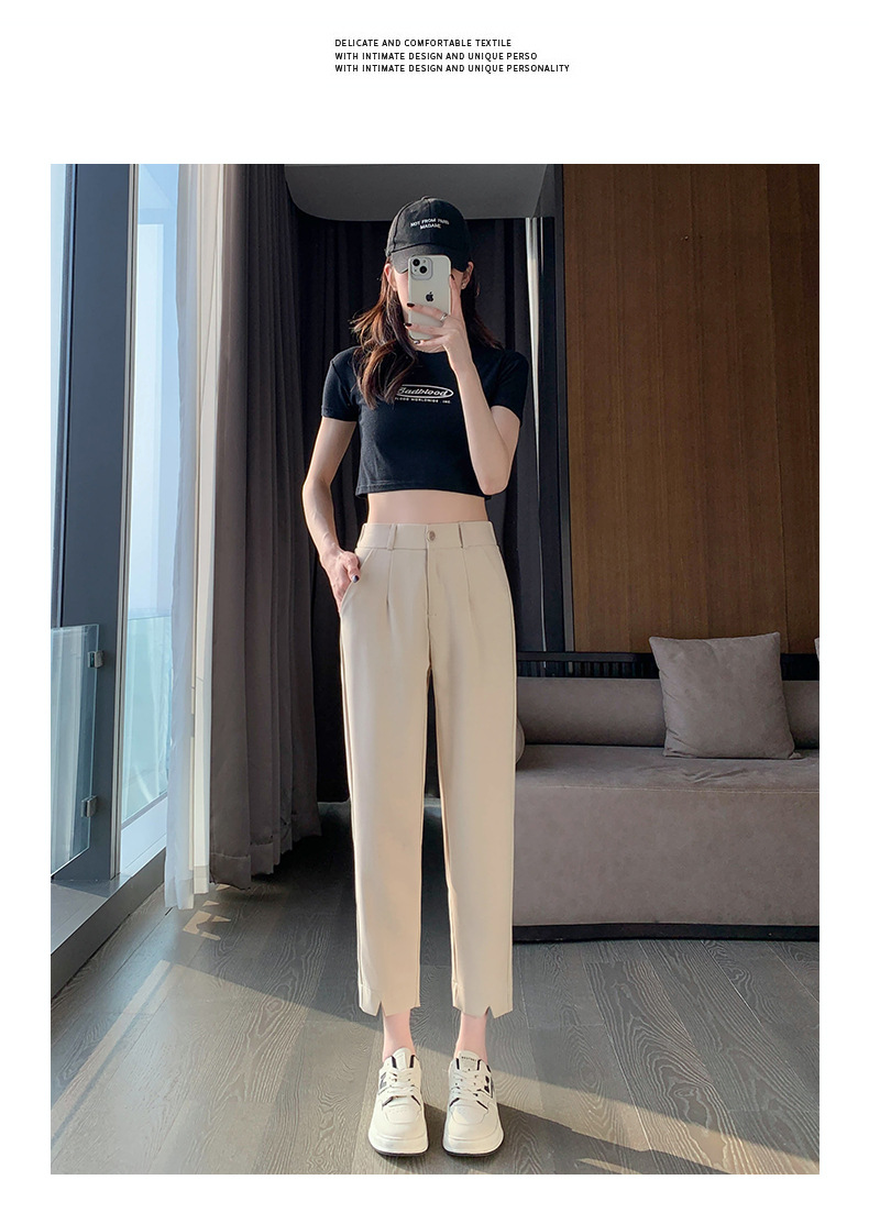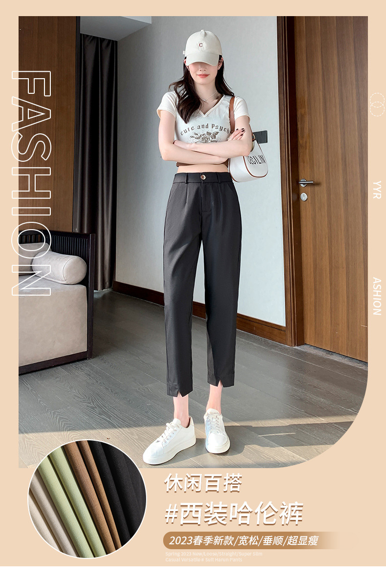 「四色可选!西装哈伦裤」黑色开叉西装裤女小个子春夏高腰哈伦裤直筒宽松休闲显瘦垂感阔腿