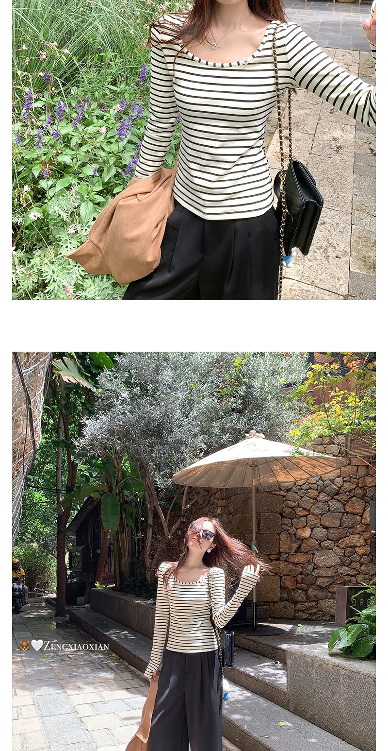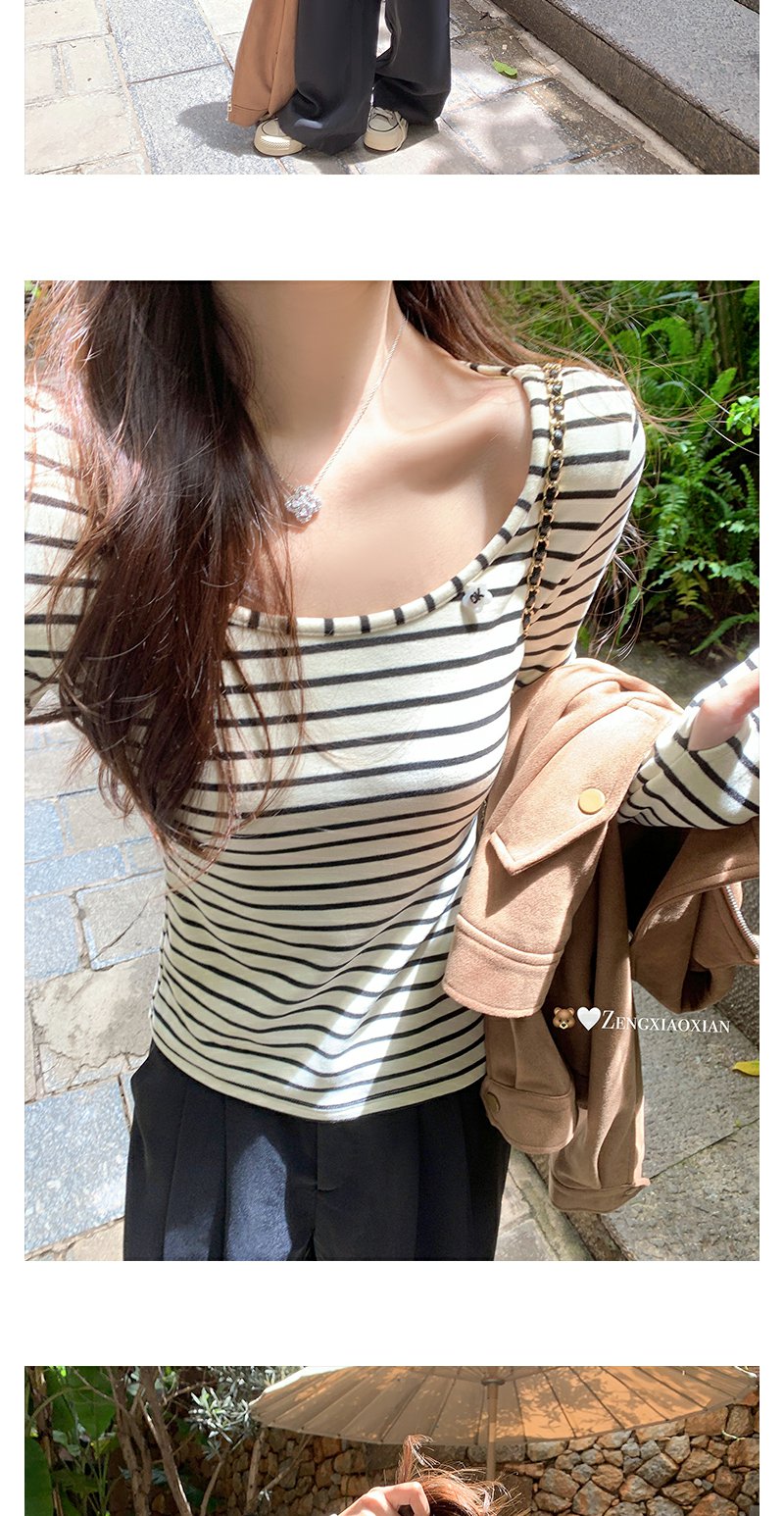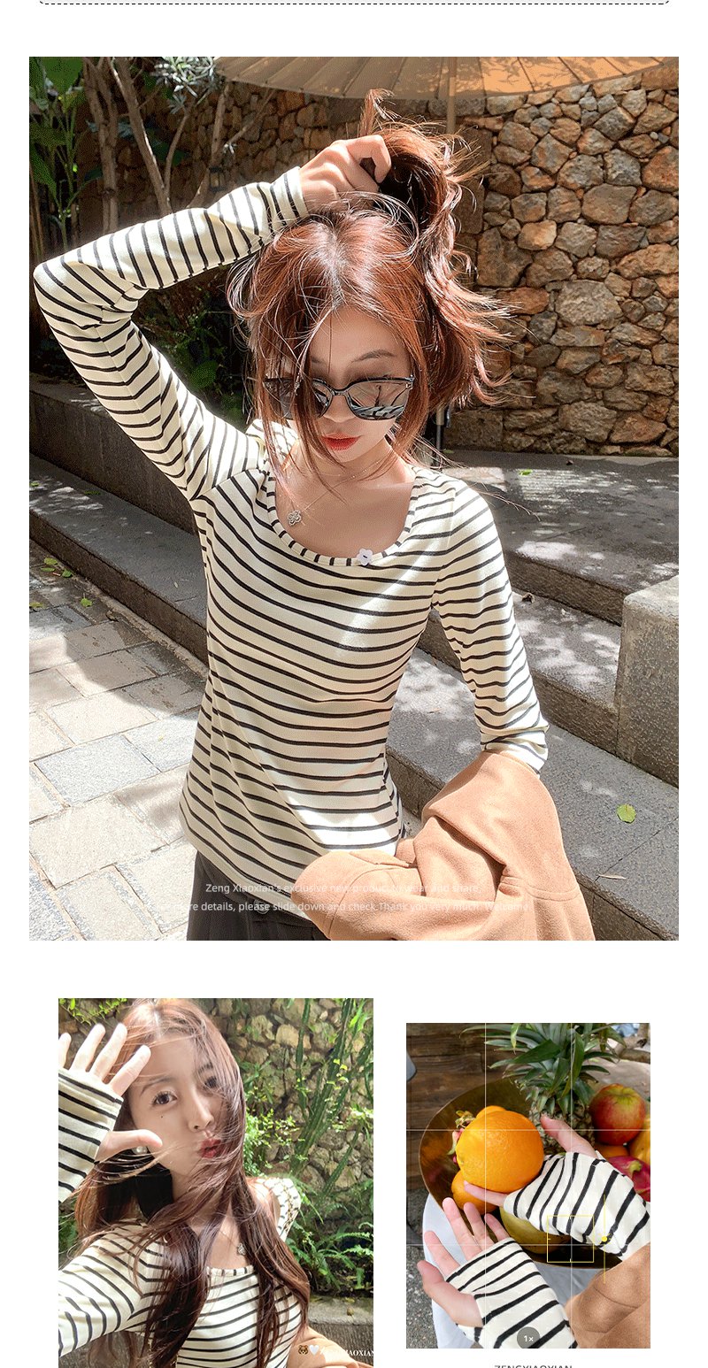 <曾小咸推荐>撞色条纹正肩长袖T恤内搭修身