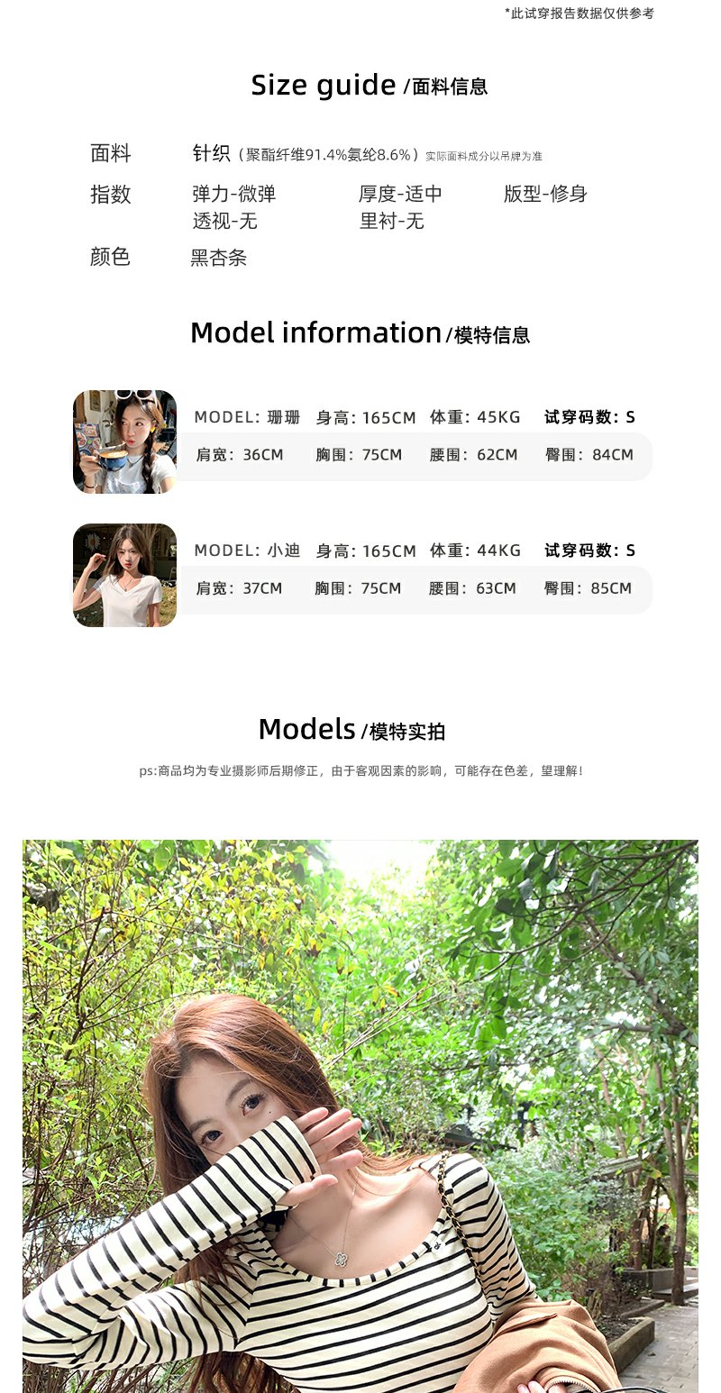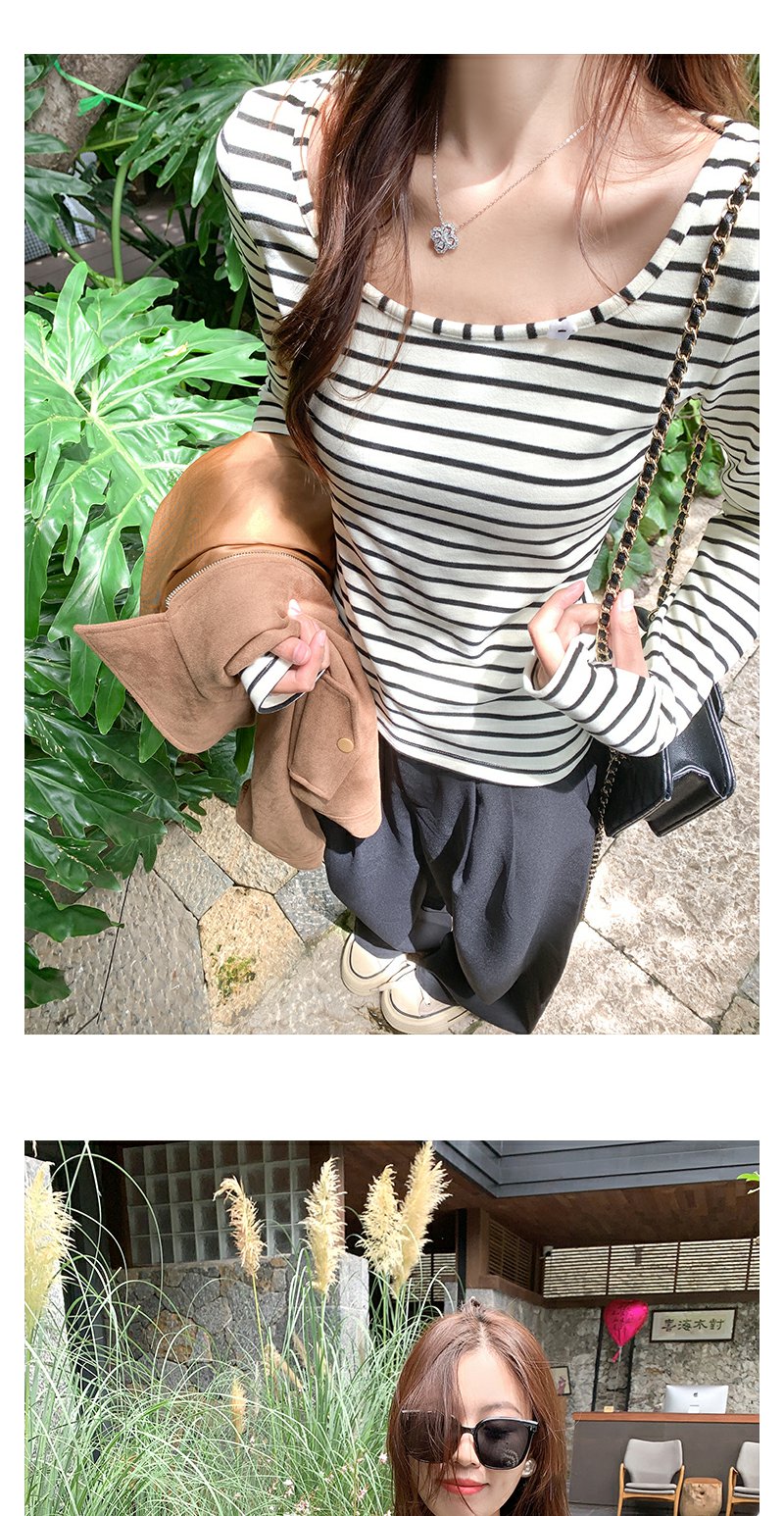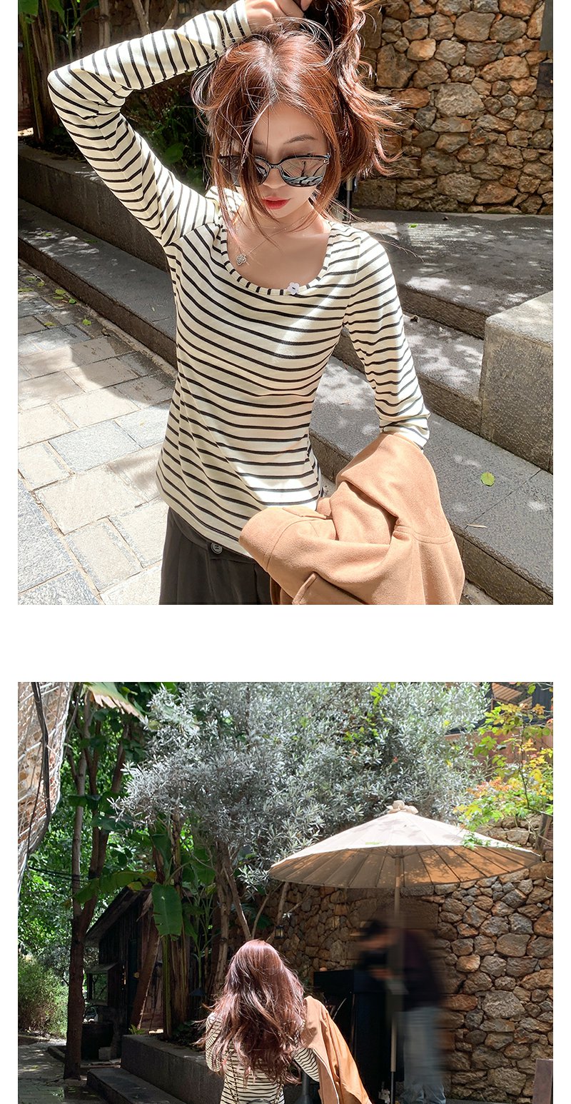 <曾小咸推荐>撞色条纹正肩长袖T恤内搭修身