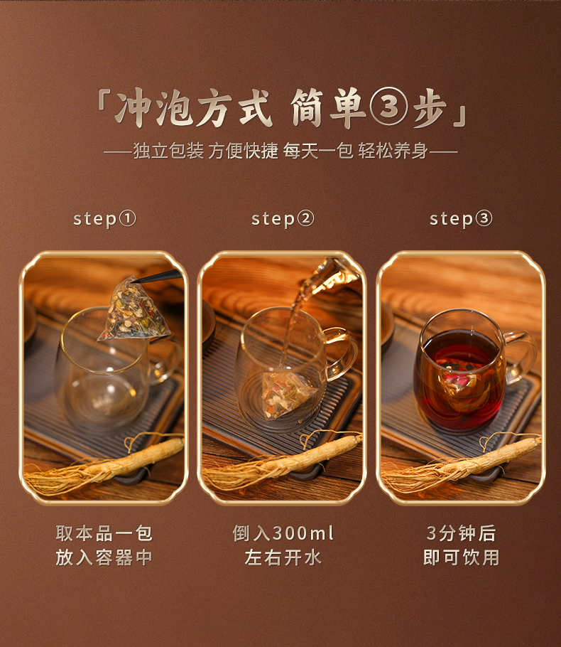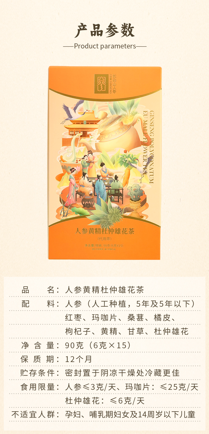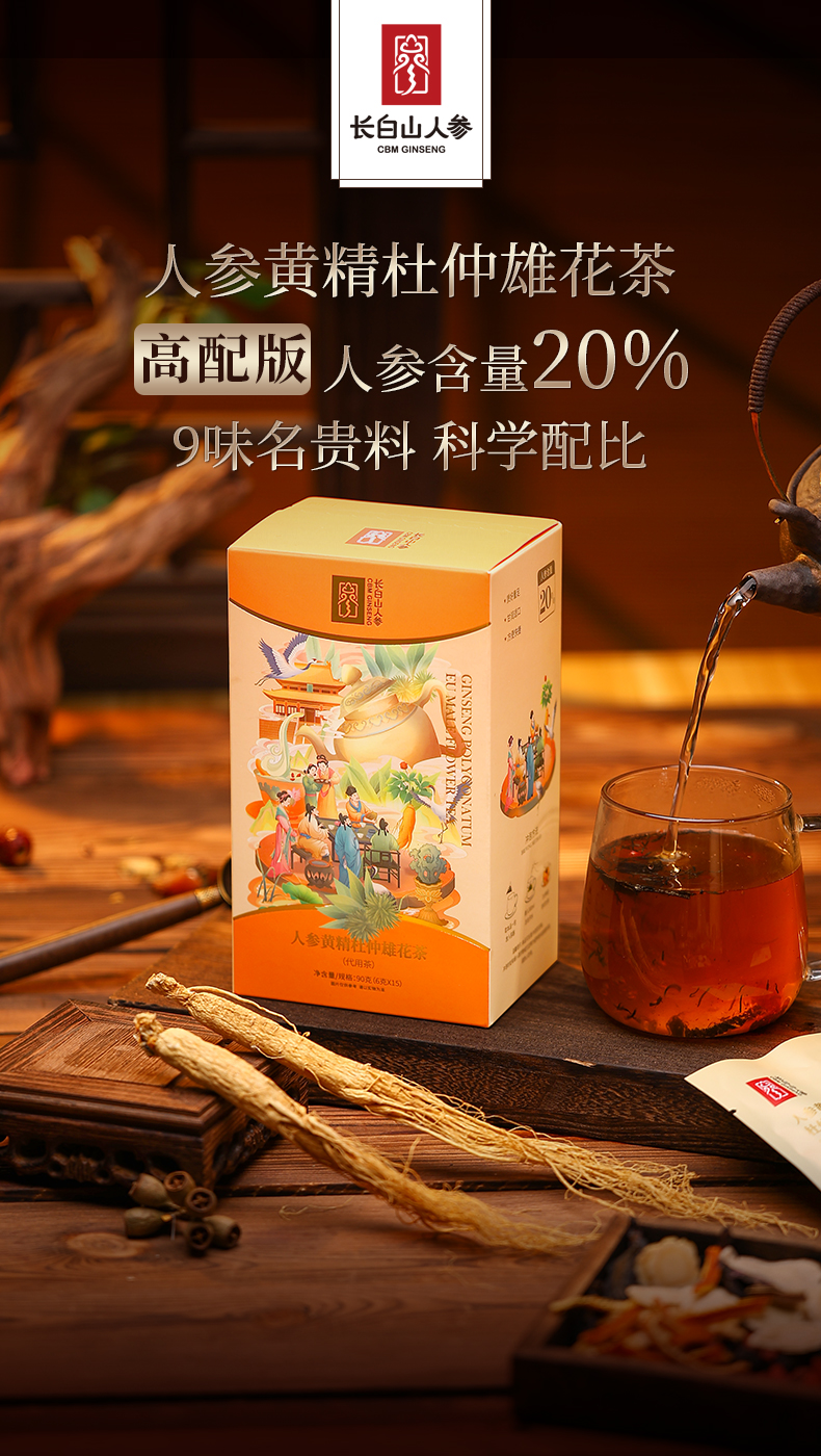 热售【人参黄精杜仲雄花茶】长白山人参升级版八宝茶人参黄精杜仲雄花茶滋补茶饮官方正品肾茶