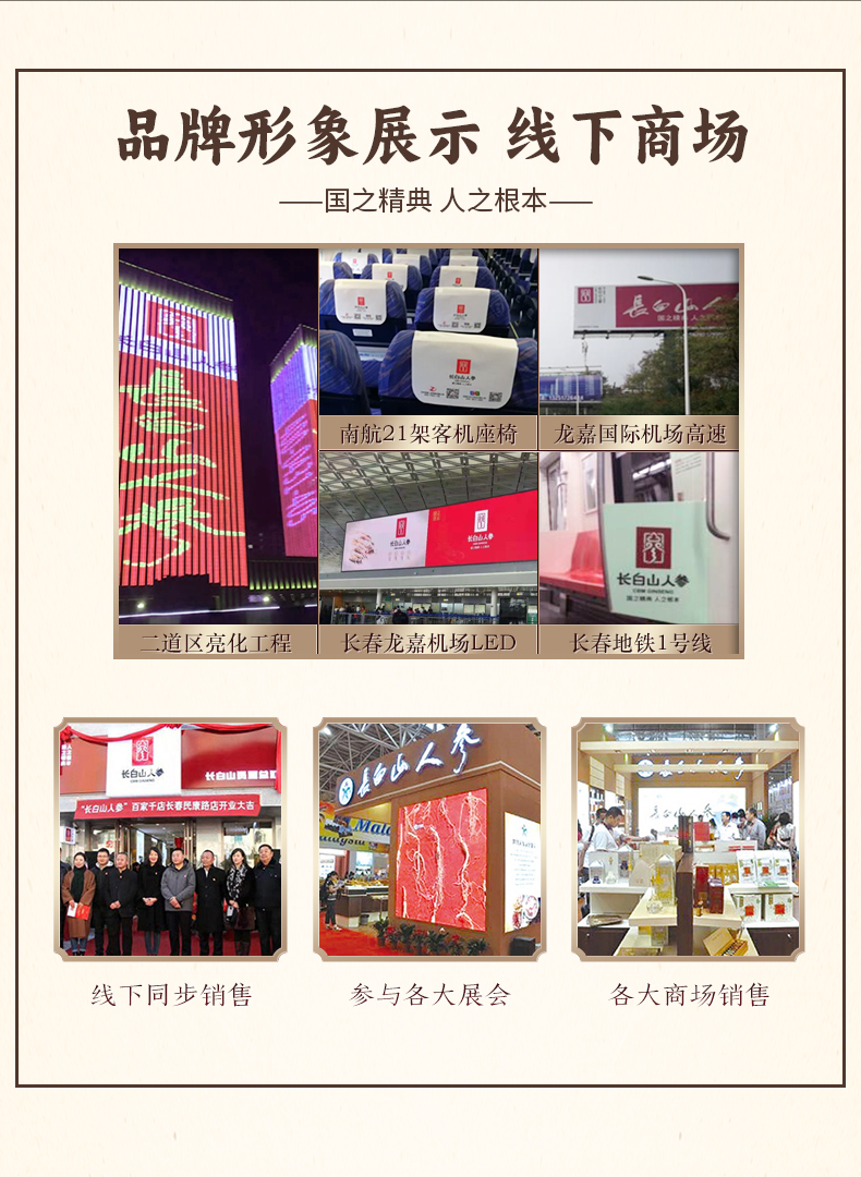 - 吉林省政府授权:“长白山人参”全国独家品牌运营商。主要经营长白山人参有关产品和长白山特产类产品