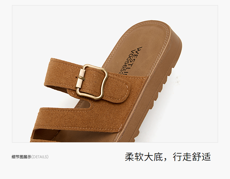 西遇勃肯凉拖鞋女外穿新款夏季超火海边一字拖鞋平底罗马凉鞋V0056534