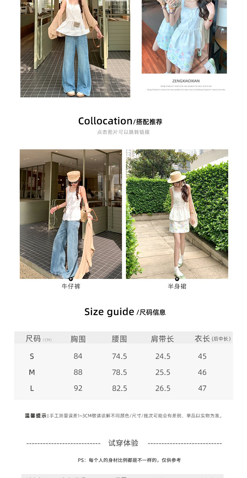 <曾小咸推荐>韩系甜美白色吊带雪纺吊带背心