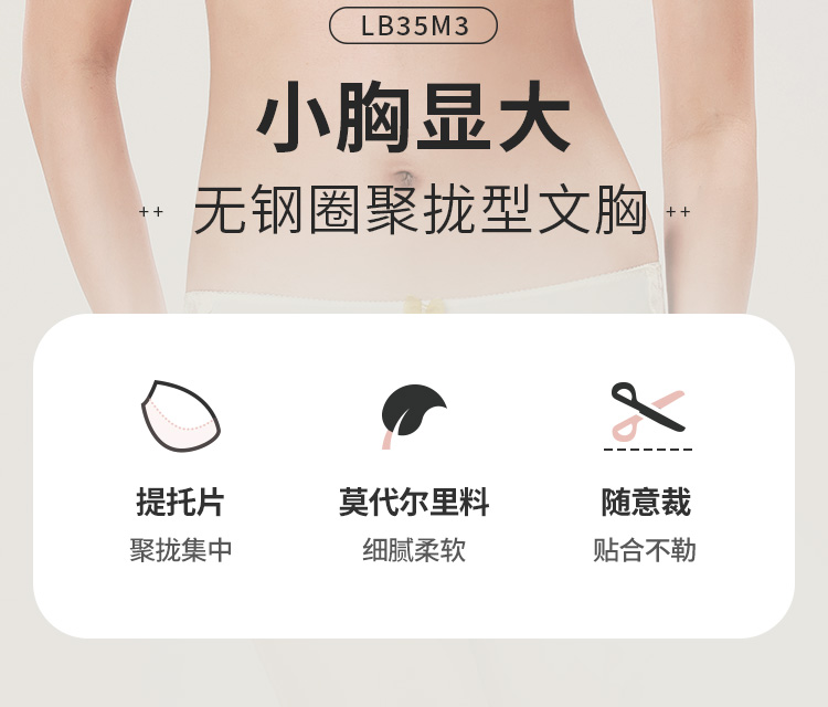 都市丽人自然舒适A杯适穿蕾丝内衣加加厚款3/4杯常规文胸无钢圈三排扣LB35M3