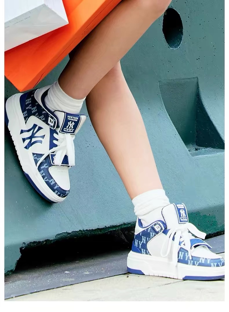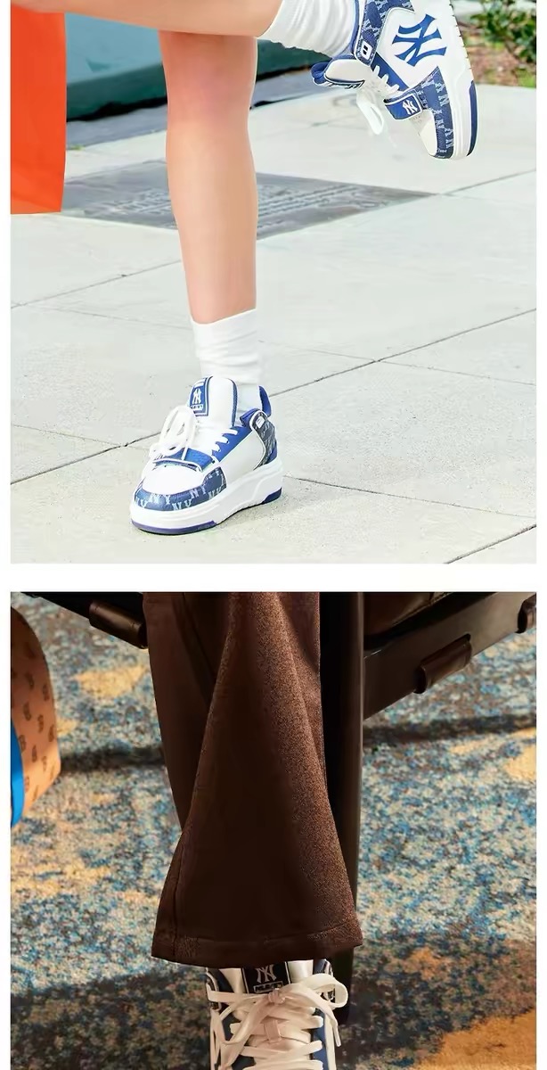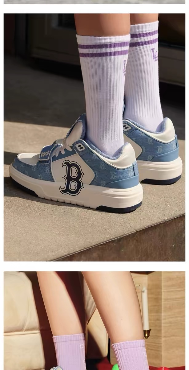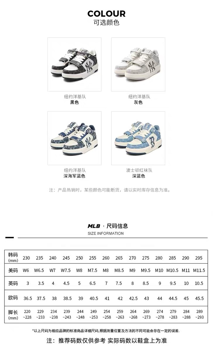 MLB男女情侣老花休闲鞋 老花仿牛仔学长板鞋