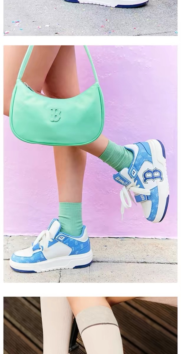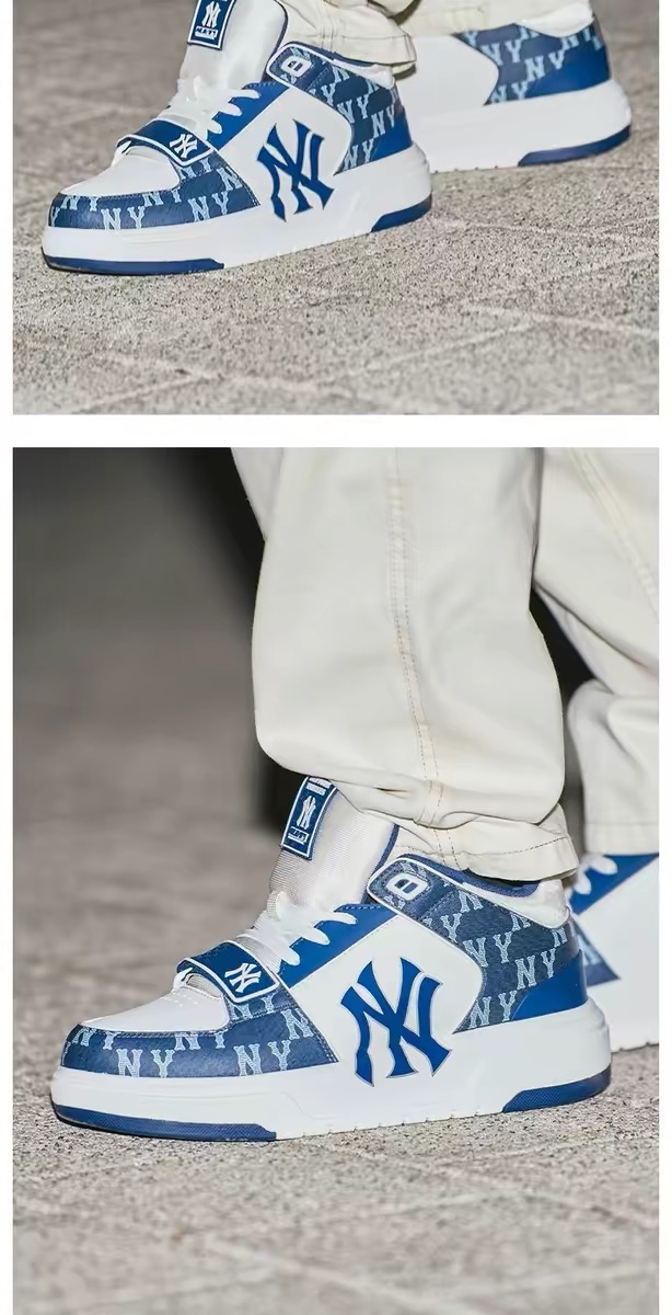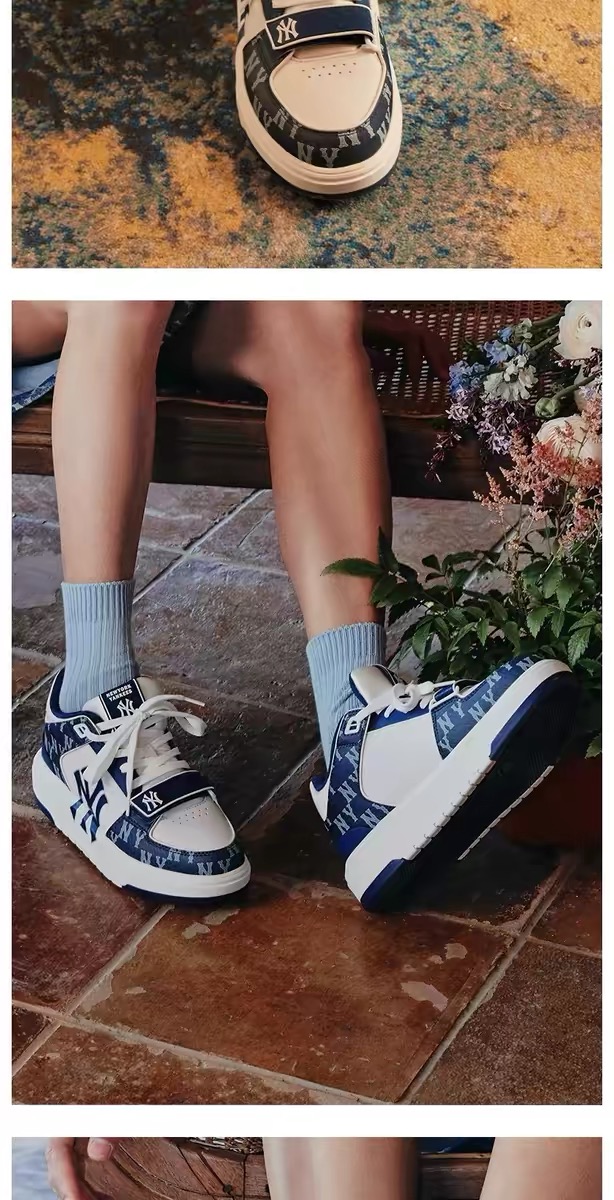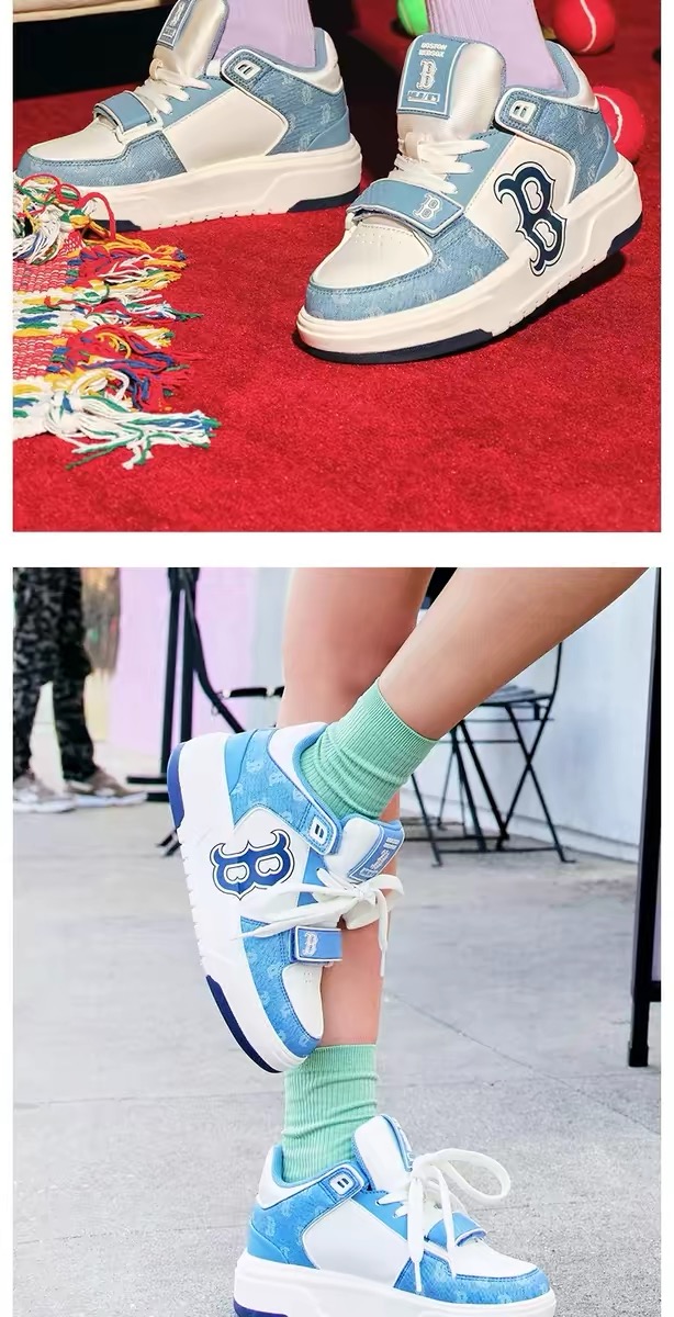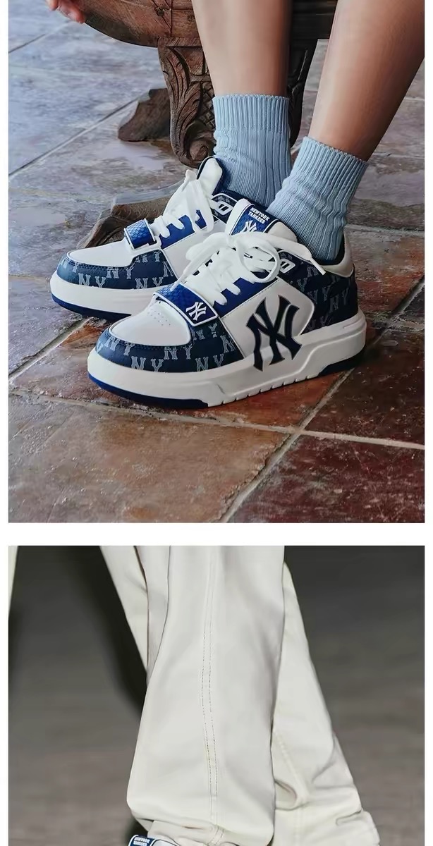 MLB男女情侣老花休闲鞋 老花仿牛仔学长板鞋