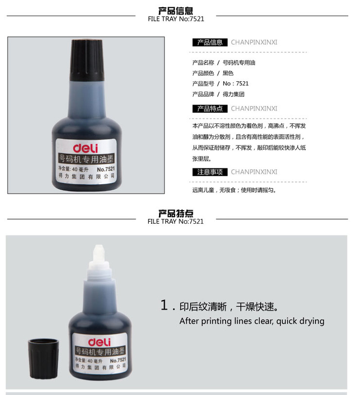 得力(deli) 号码机专用油墨7521 标价机添加墨水 油墨印油 40ML黑色