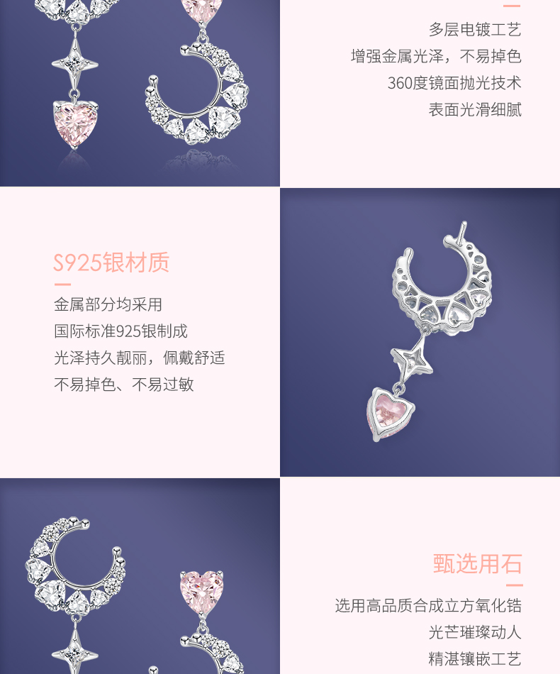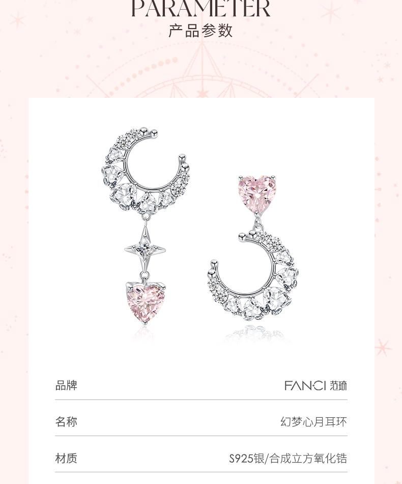 Fanci范琦【幻梦心月系列】幻梦心月耳环女925银月亮小众耳饰