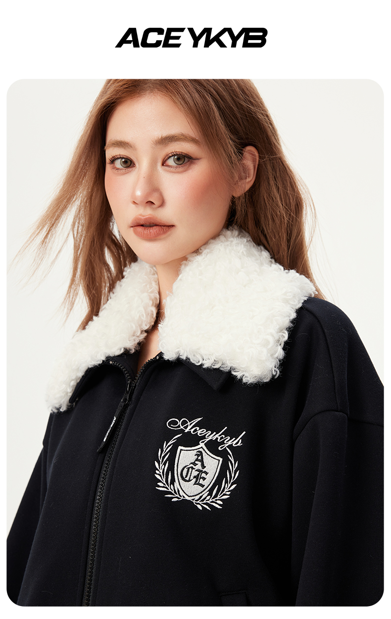 YKYB黄子韬女款春秋复合奥粒绒卷毛领可拆卸外套Y51NWT045