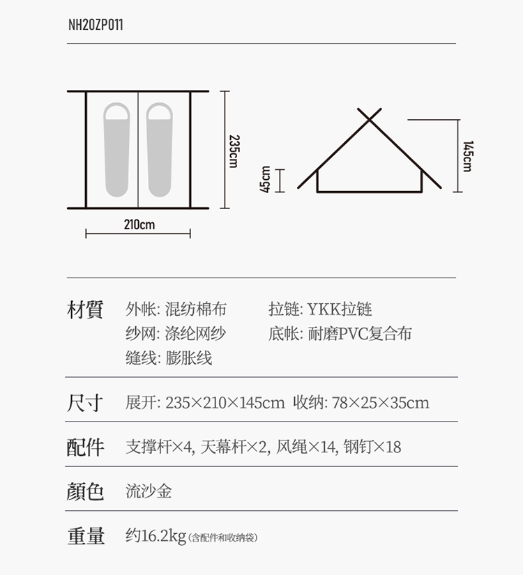 【已下架】预售 | Naturehike挪客Glamping 亘Extend4.8棉布A形帐篷[福利品]