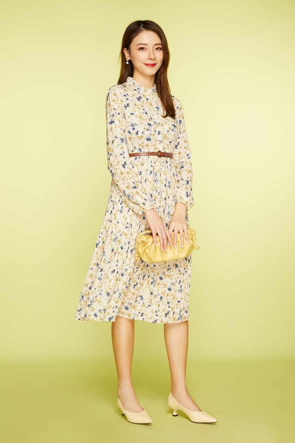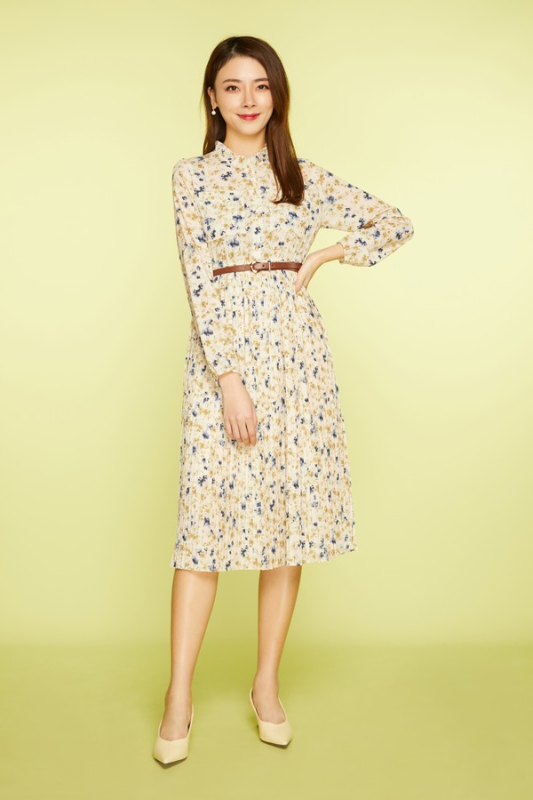 DOTACOKO 芥末黄学院风百褶连衣裙 3290