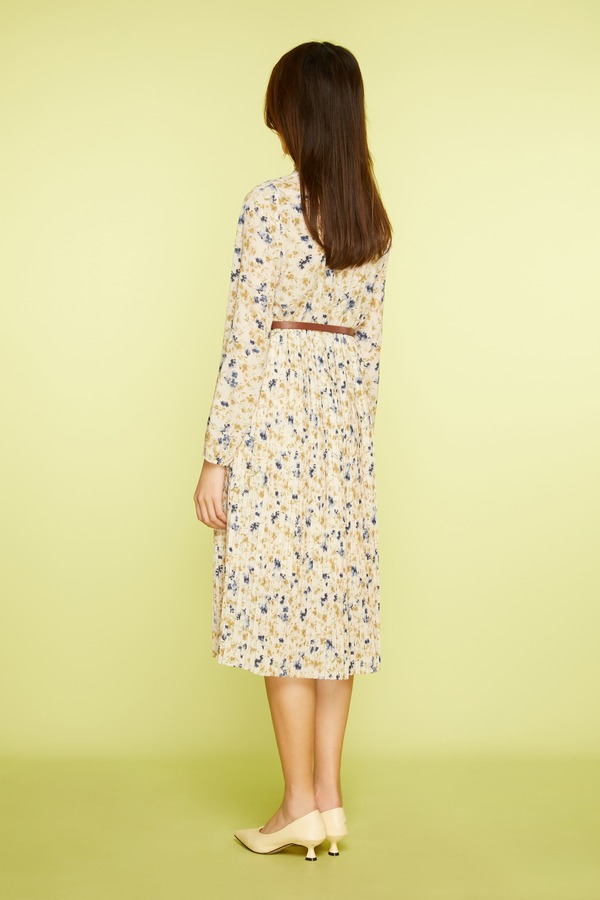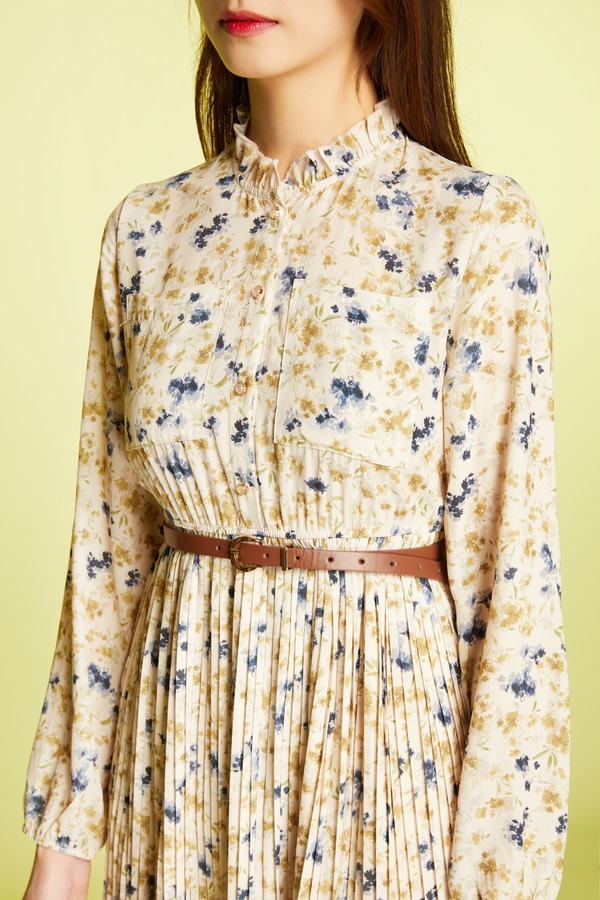 Le Malene 压褶皮带收腰碎花连衣裙 11416
