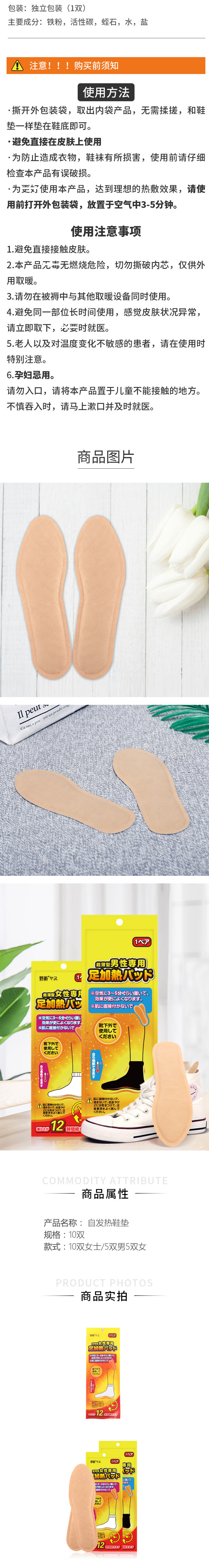 【限时折扣】日本野斯自发热鞋垫*10(10双女/5双男5双女)