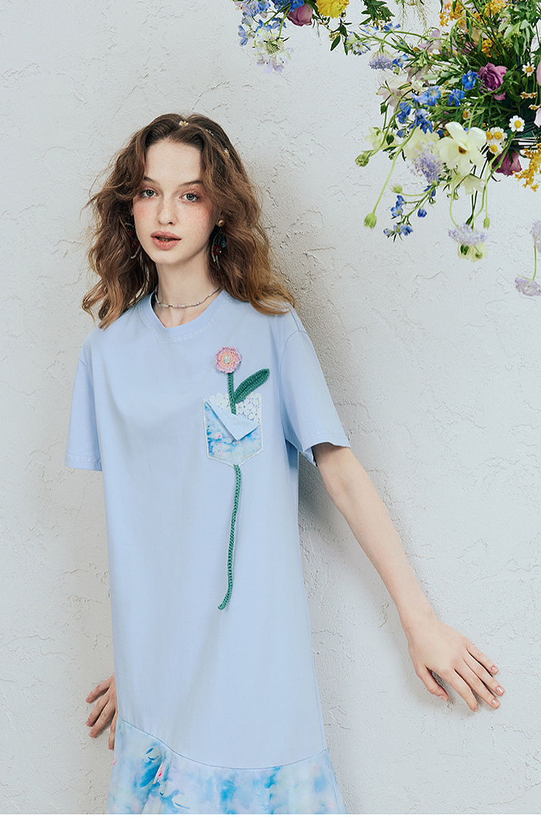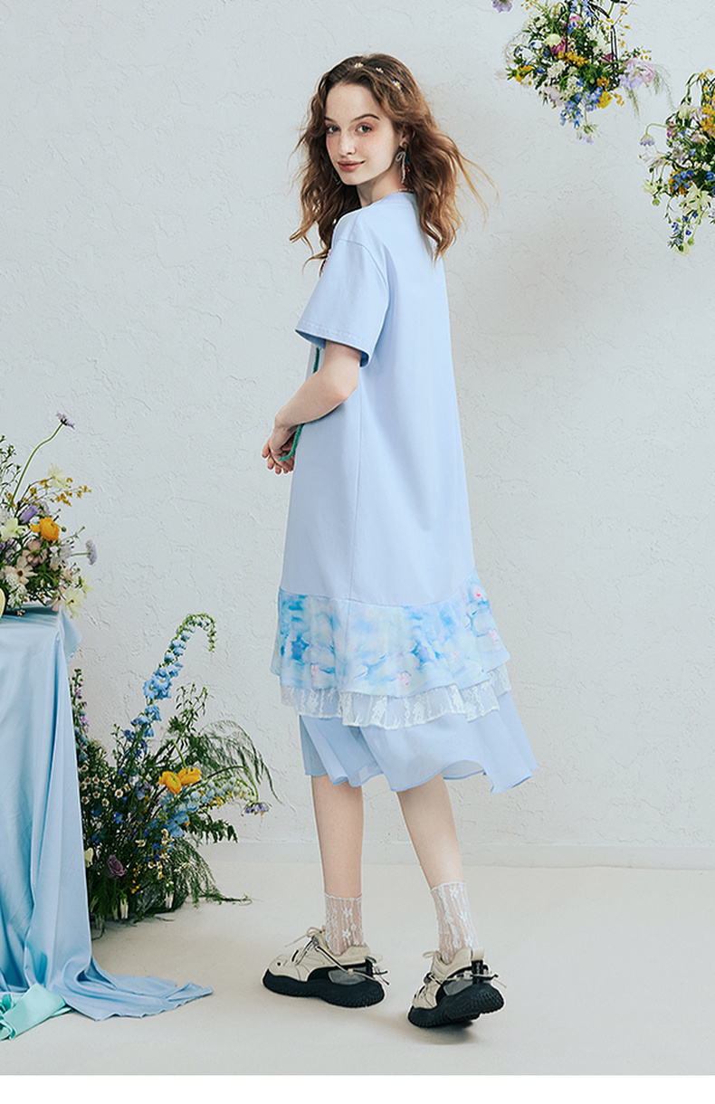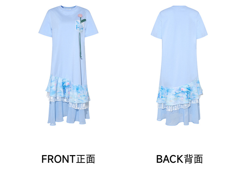 两三事印象微光2025夏季新款小清新立体勾花蕾丝拼接荷叶边连衣裙