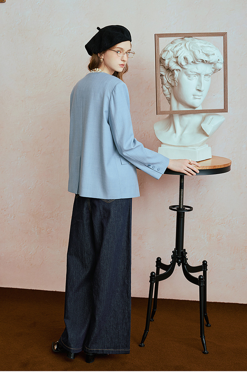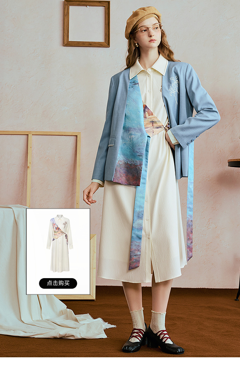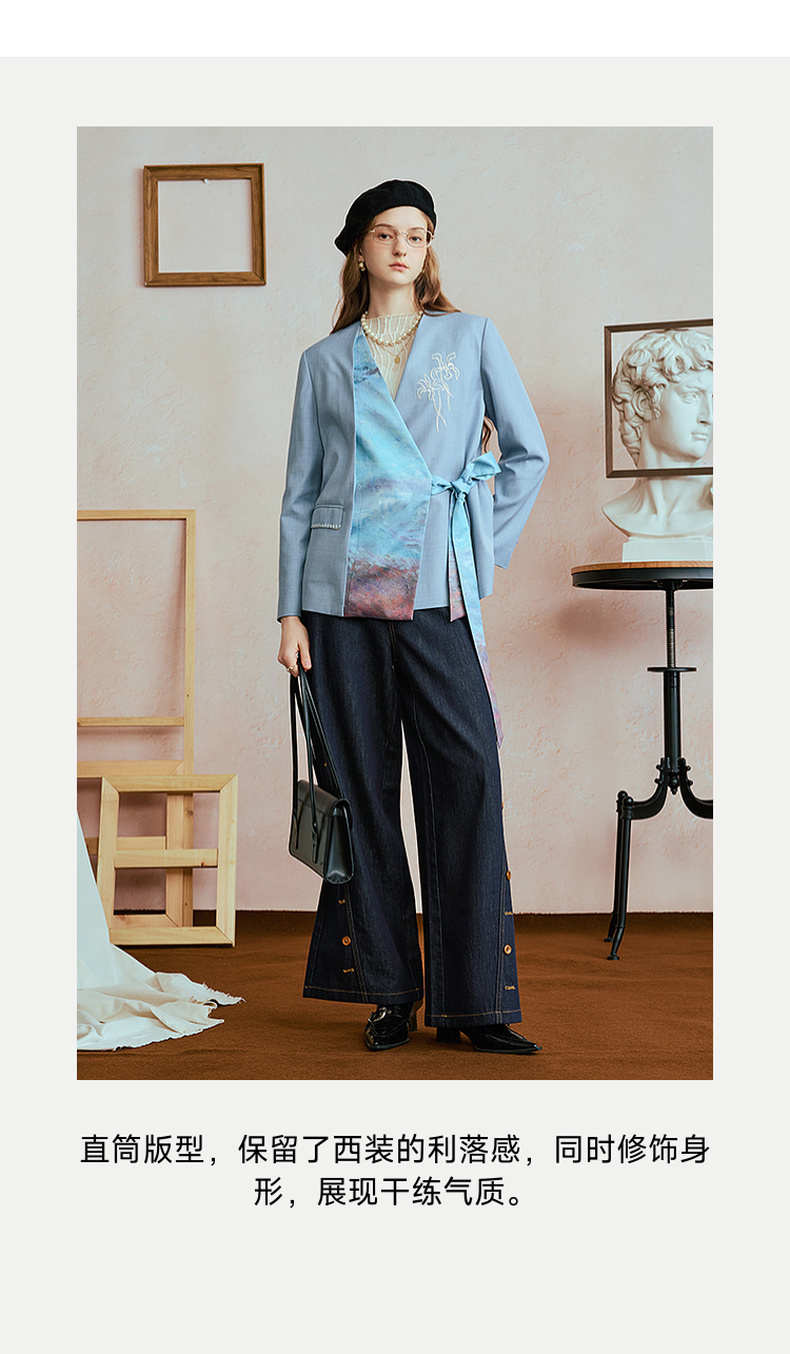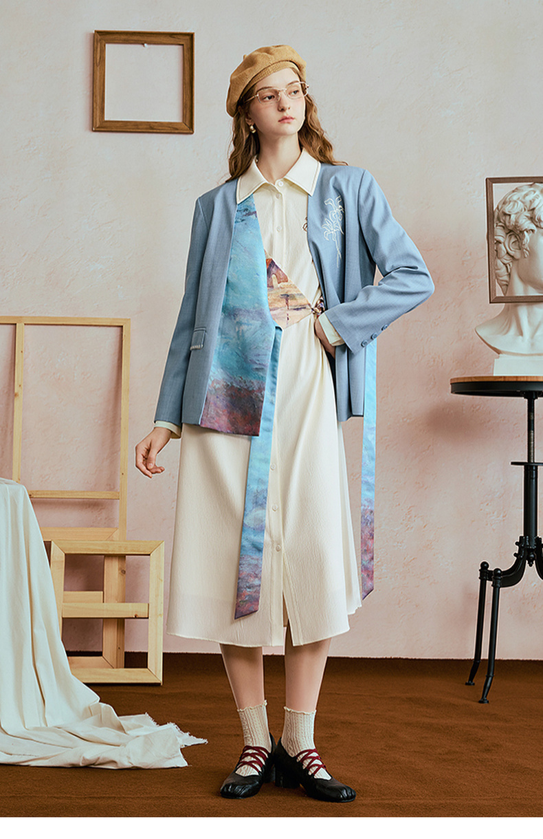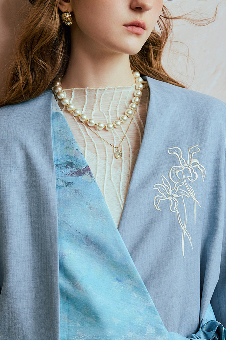 两三事 鸢徊西月 2025秋季新款复古印花布拼接绑带绣花西装外套女