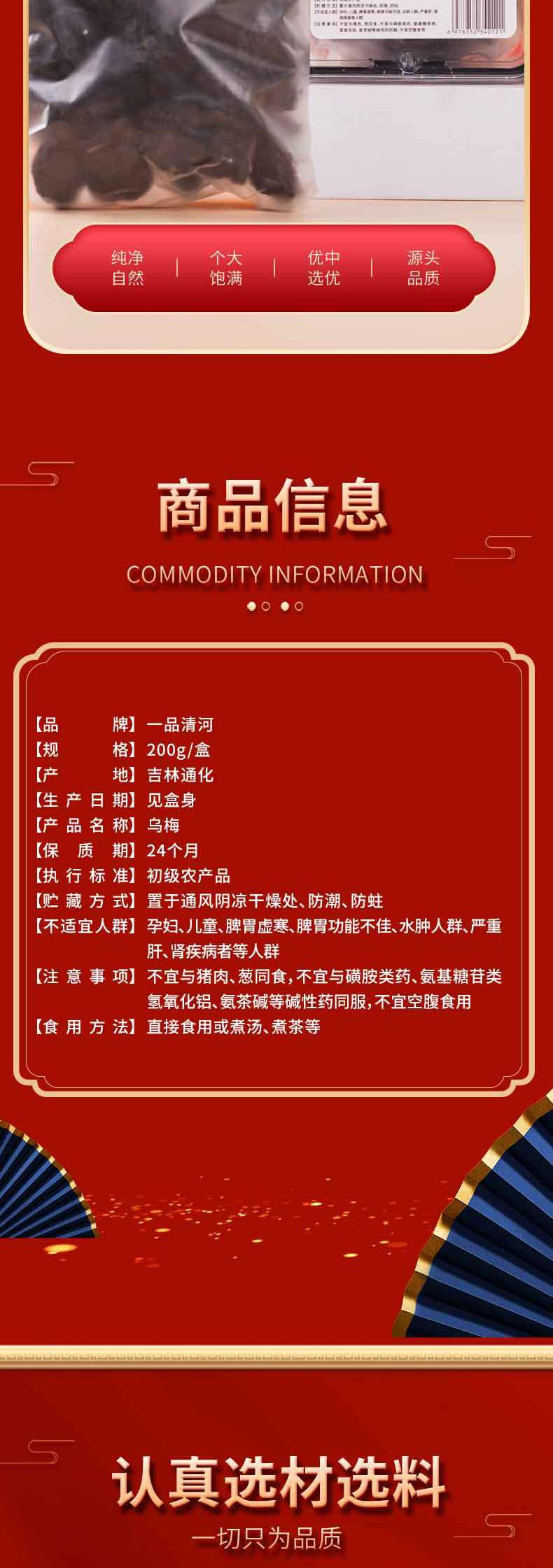 【自营】一品清河 乌梅200g熏乌梅酸梅 YPQHWM200G