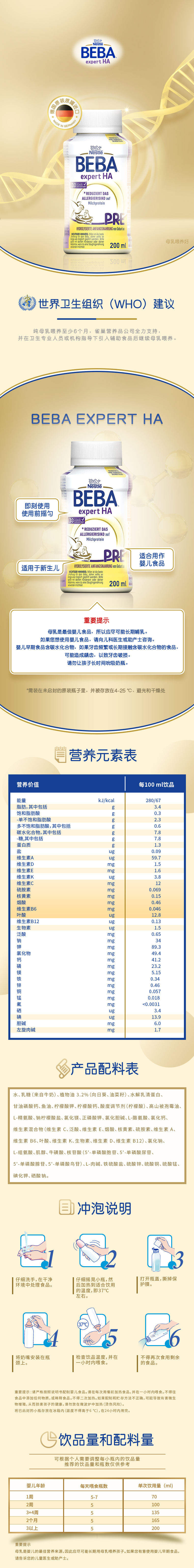 【系统升级中,微信下单优惠】 顺丰常温发货,跨境商品 | 新包装雀巢BEBA EXPERT HA PRE适度水解水奶200ml (效期26年6月)
