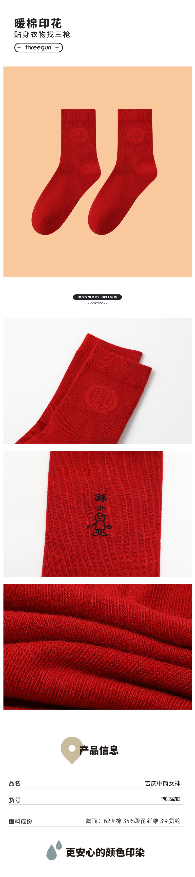 Threegun三枪 吉庆福气满满中筒男红袜(1双装)-T90065Z03