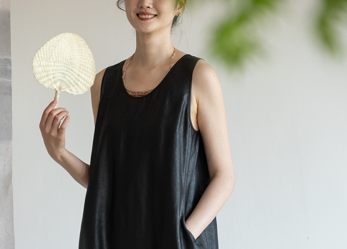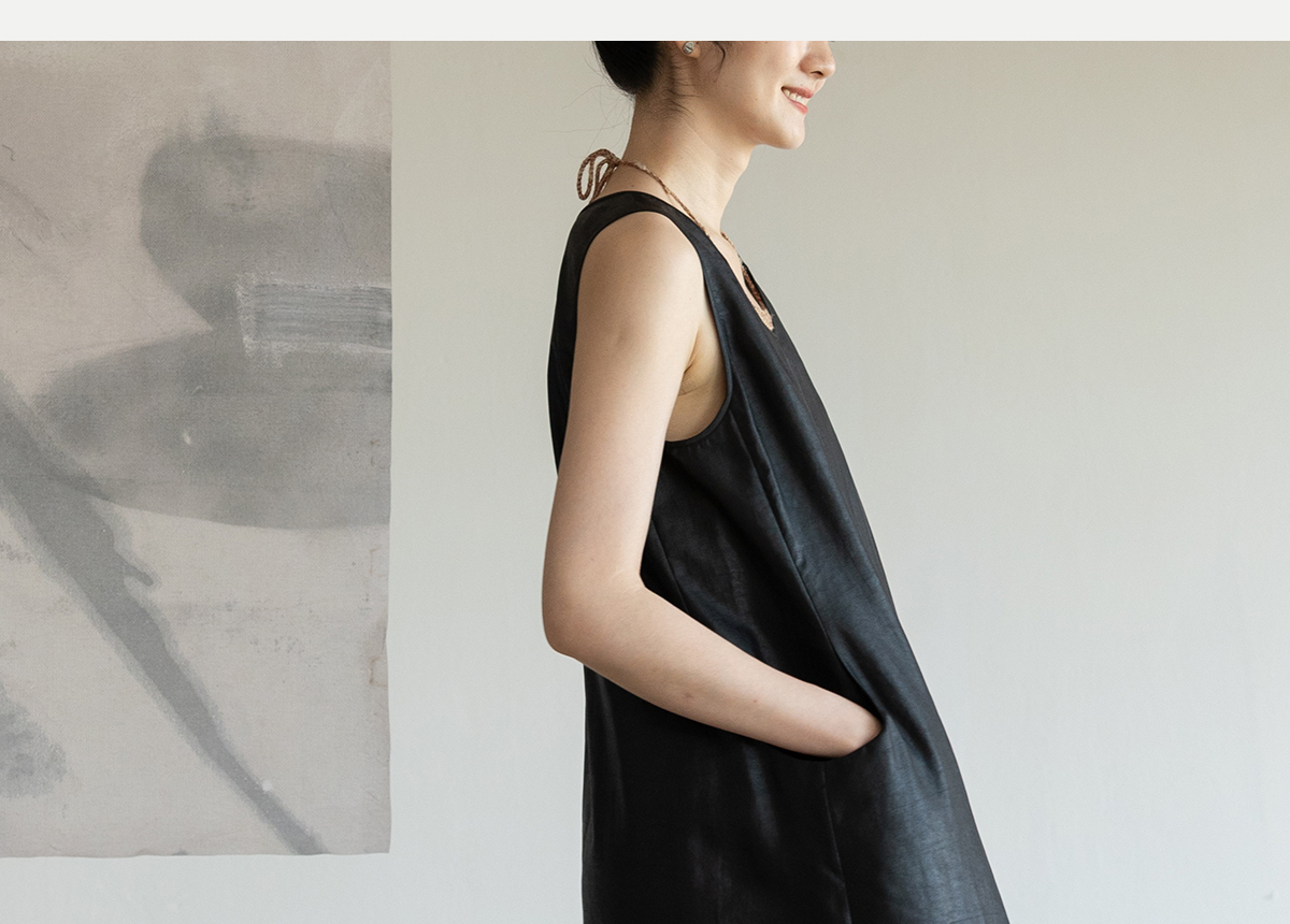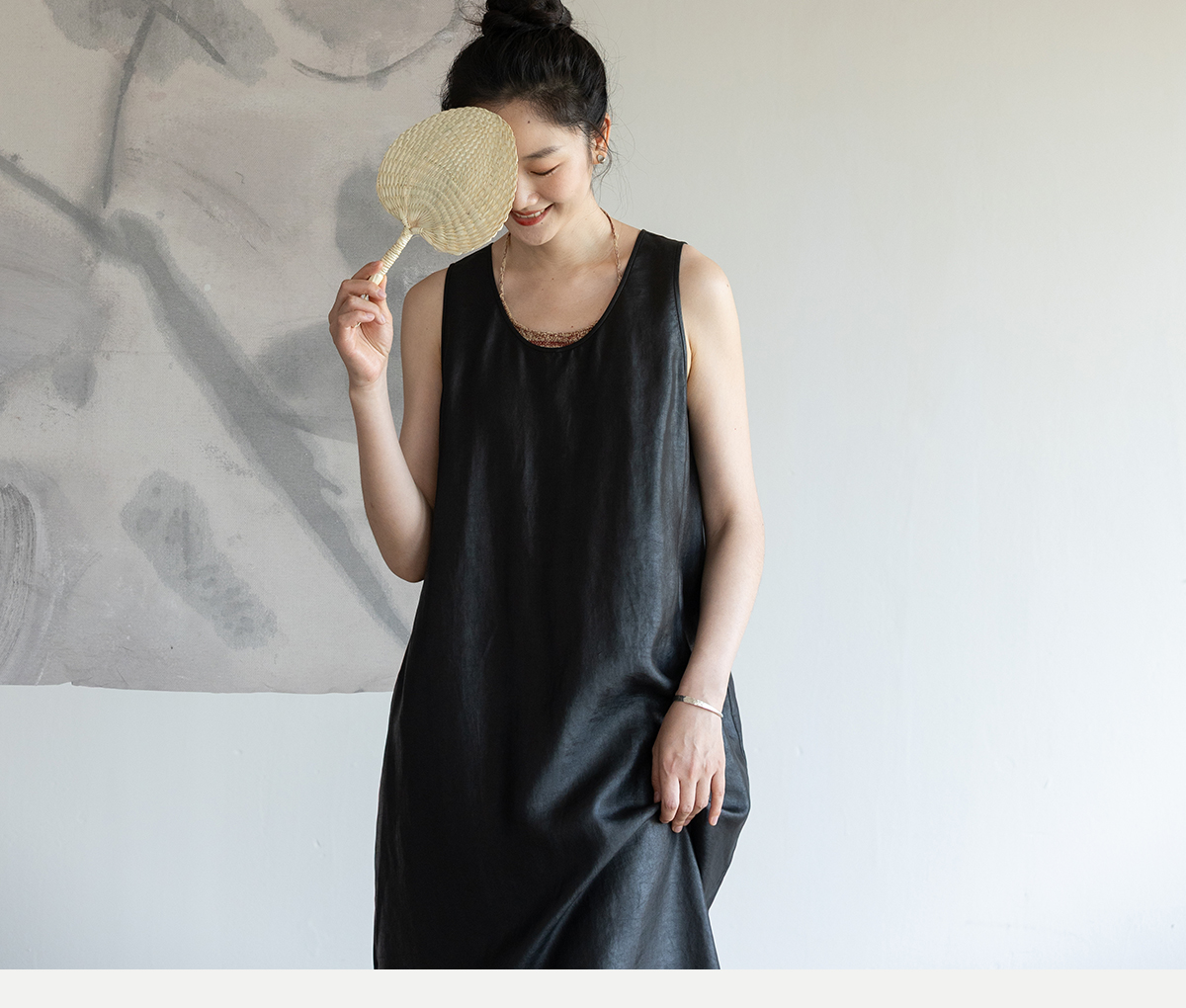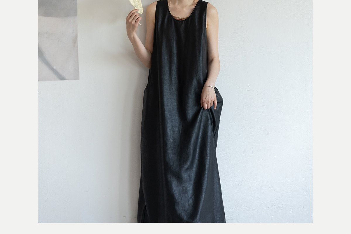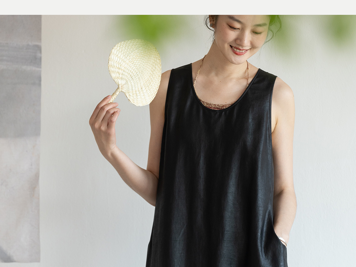 牧衣游原创 18姆米薯莨染香云纱连衣裙随性显瘦无袖长裙 岁月如梭