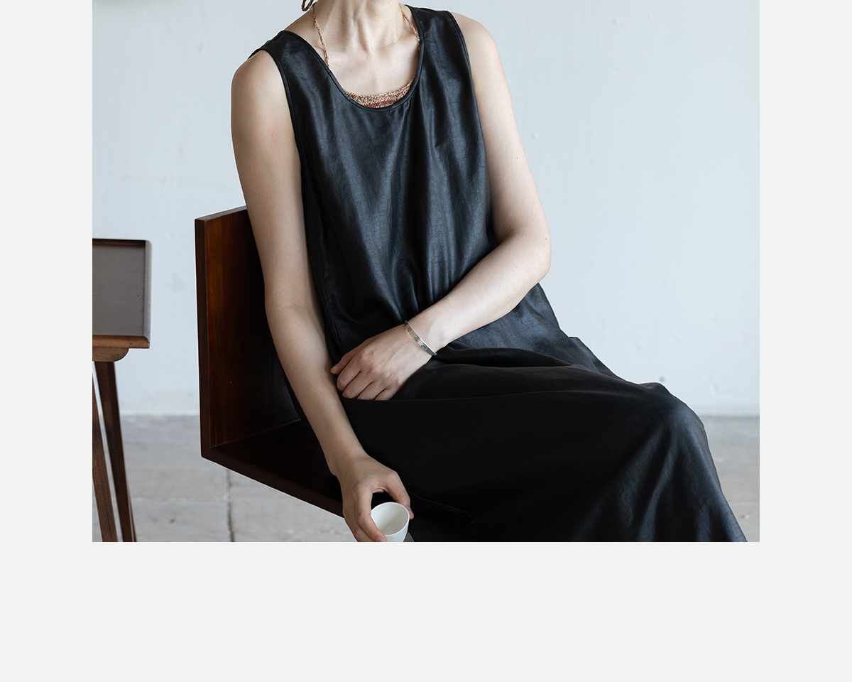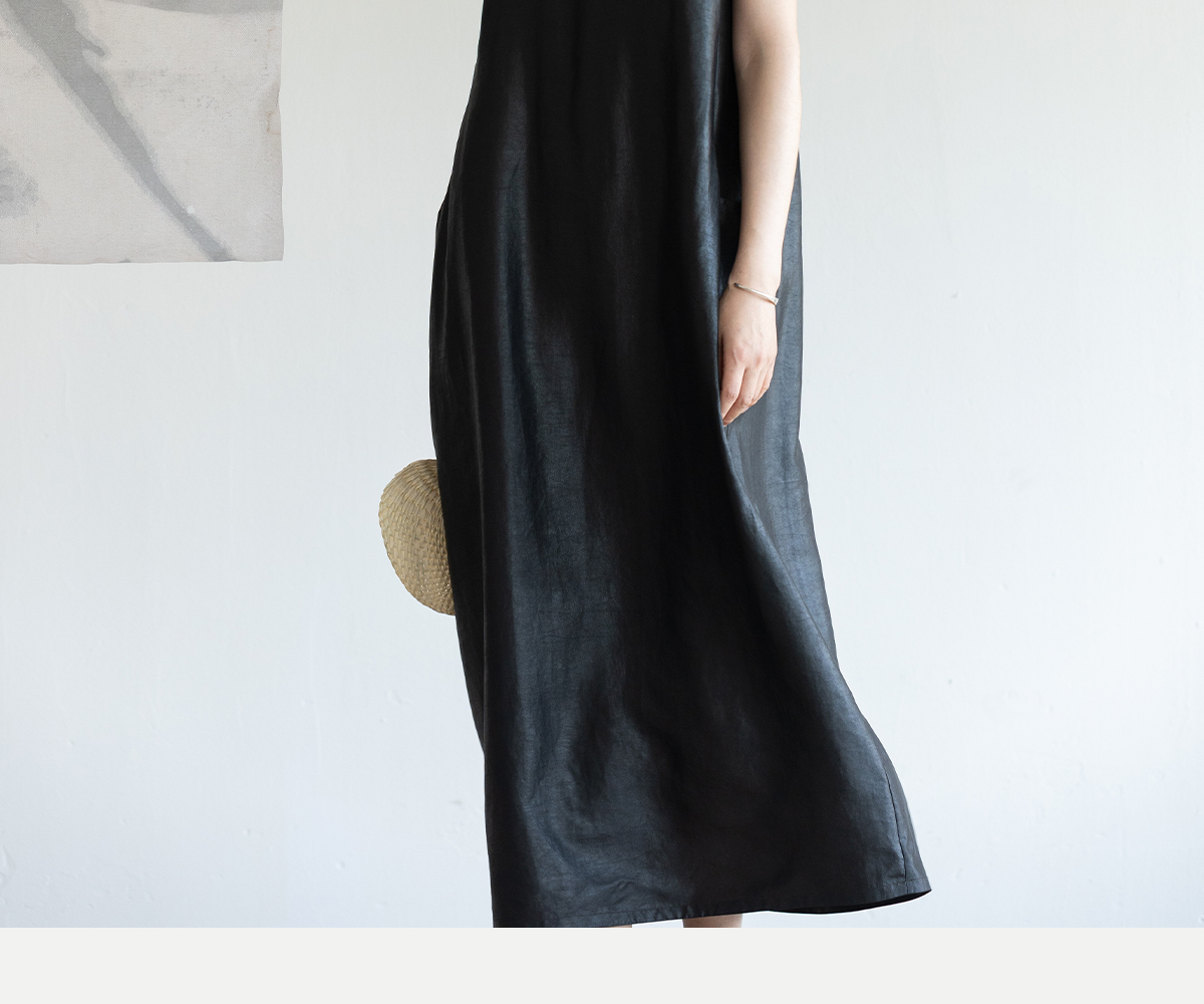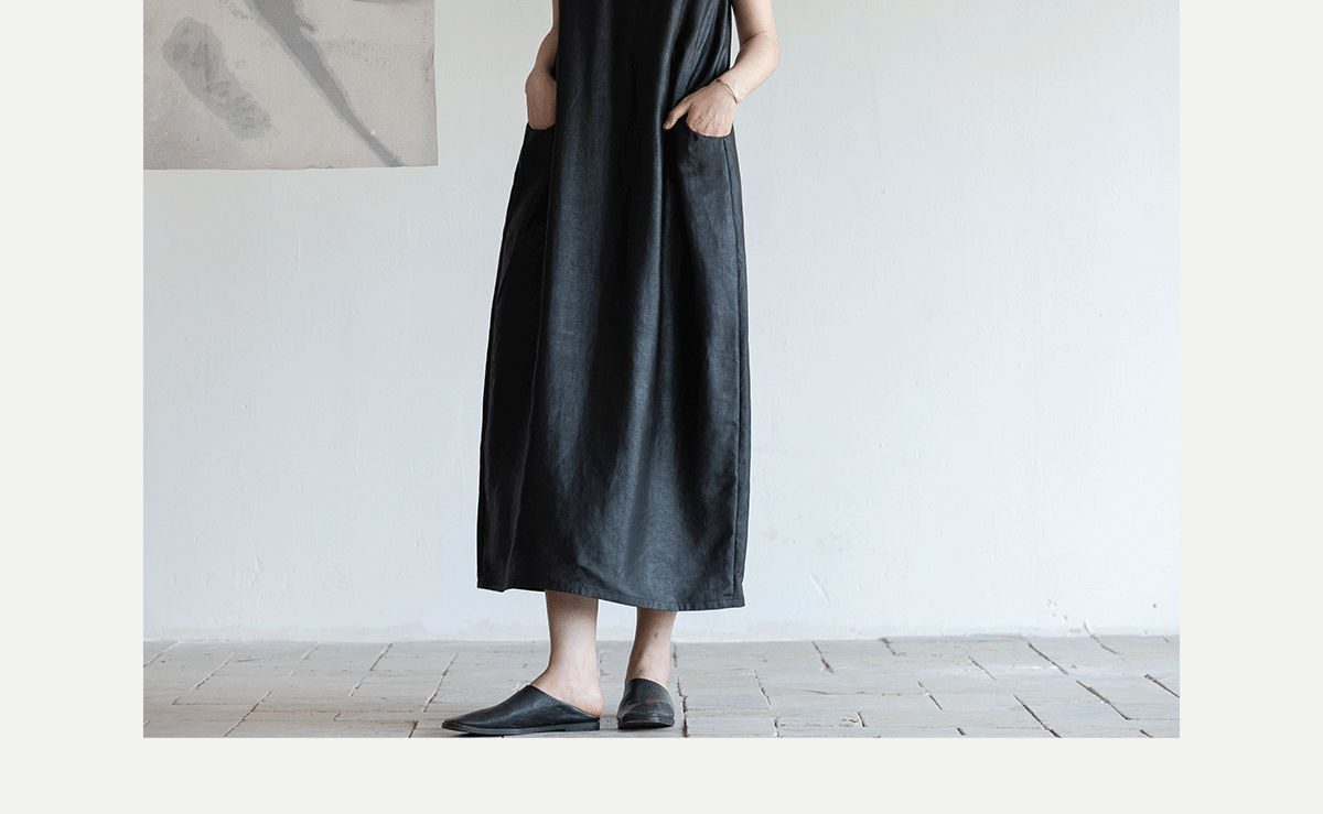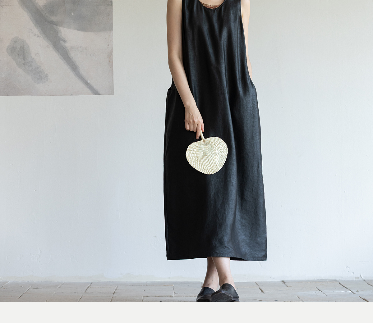 牧衣游原创 18姆米薯莨染香云纱连衣裙随性显瘦无袖长裙 岁月如梭